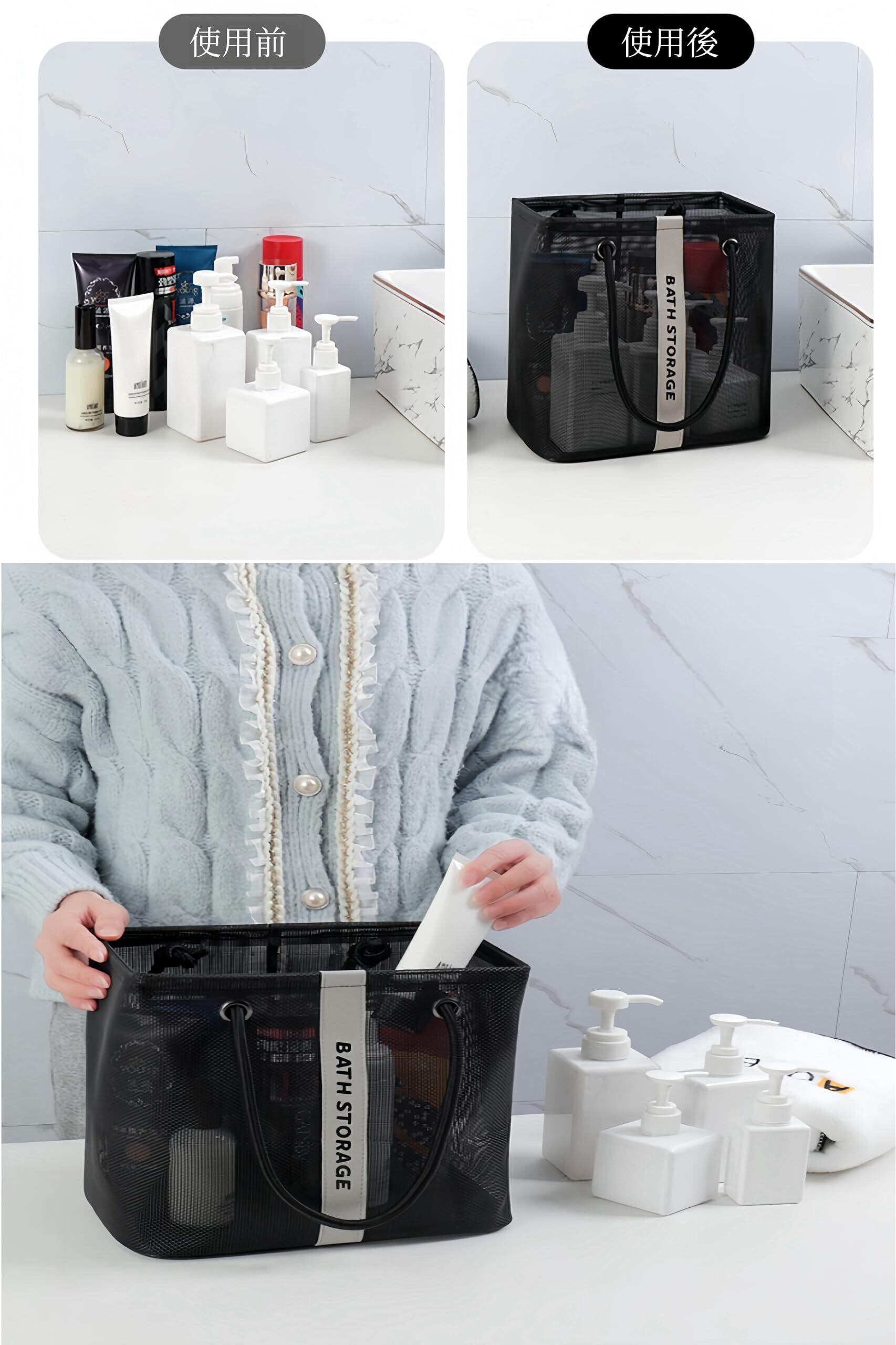 [YFFSFDC] バッグ 温泉 バス プール サウナ メッシュ素材 大容量 手提げバッグ お持ち運び便利 旅行 アウトドア レジャー トート