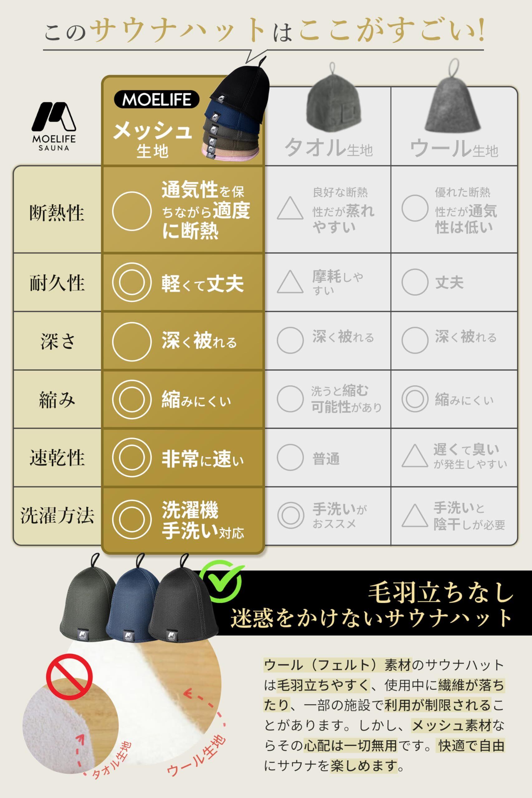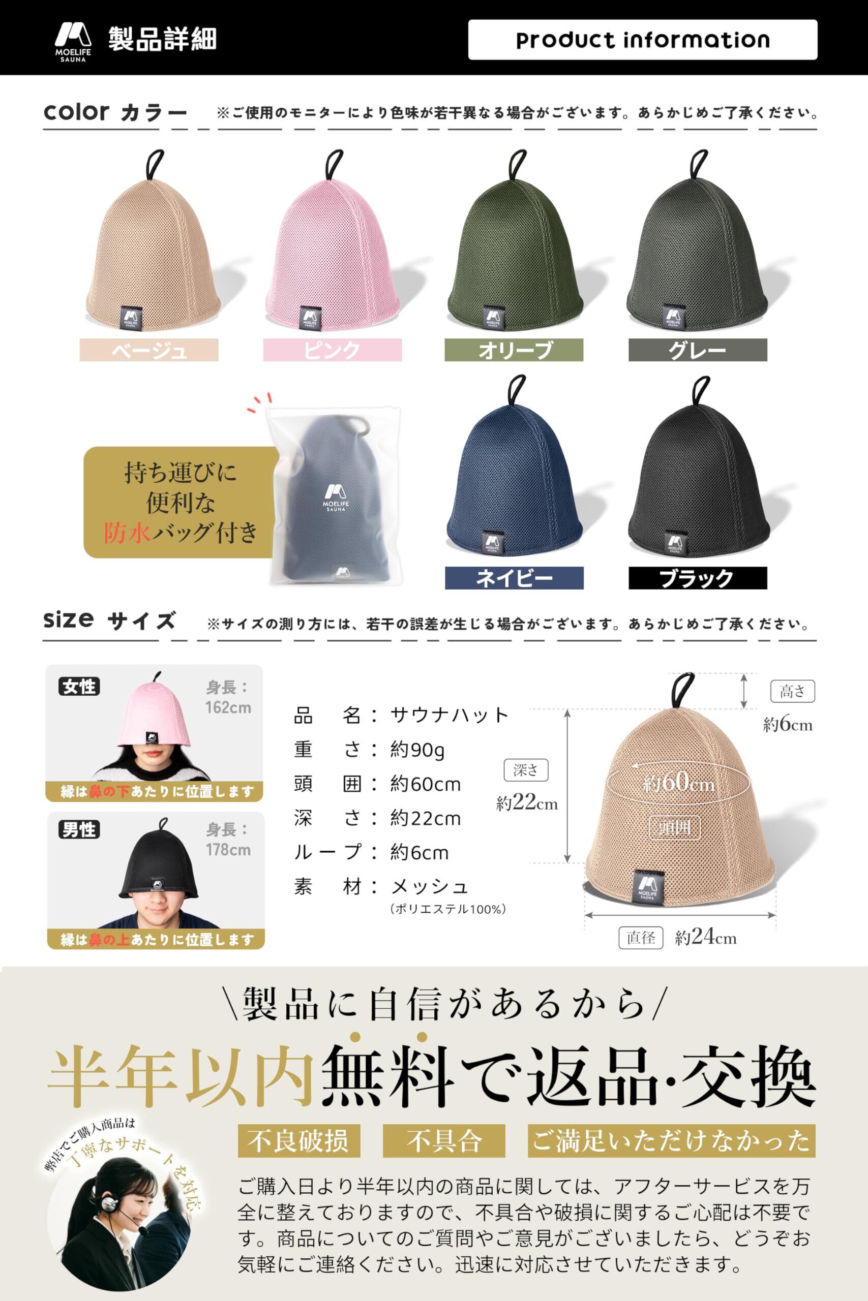 [モエライフ] サウナハット メンズ レディース 【メッシュ生地・二重構造・キーポケット付き】 サウナ ハット キャップ サウナハット 大きめ 深め サウナグッズ 洗える 蒸れない 速乾 軽量 ダメージケア のぼせ防止 風呂 温泉 サ活 防水ケース付き