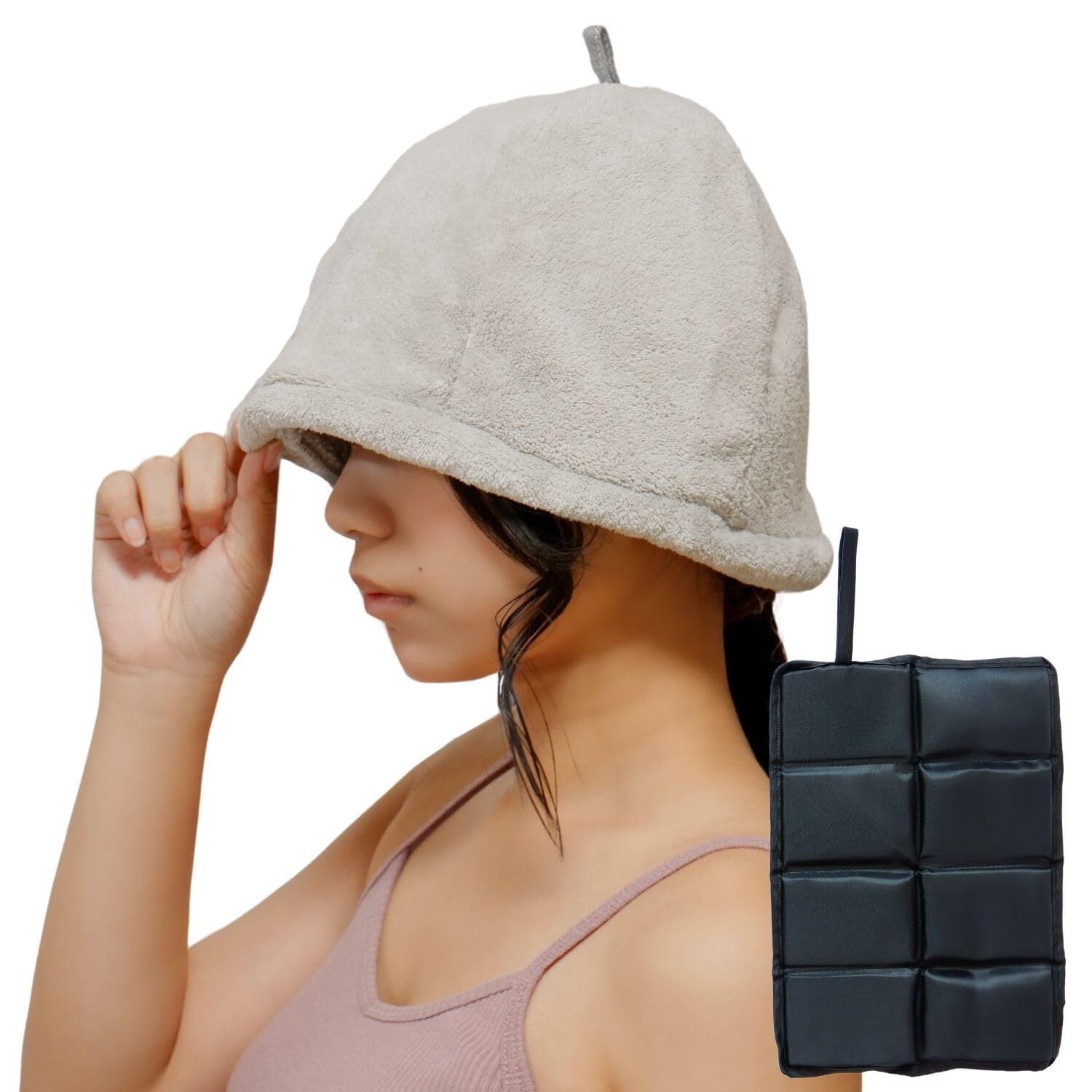 【2022最新】[Mie-Mie] サウナハット サウナ タオル キャップ 【サウナマット付】 ふわふわ 洗える 極厚 クッションマット サウナマット セット サウナ グッズ (gray×matblack) | paghag