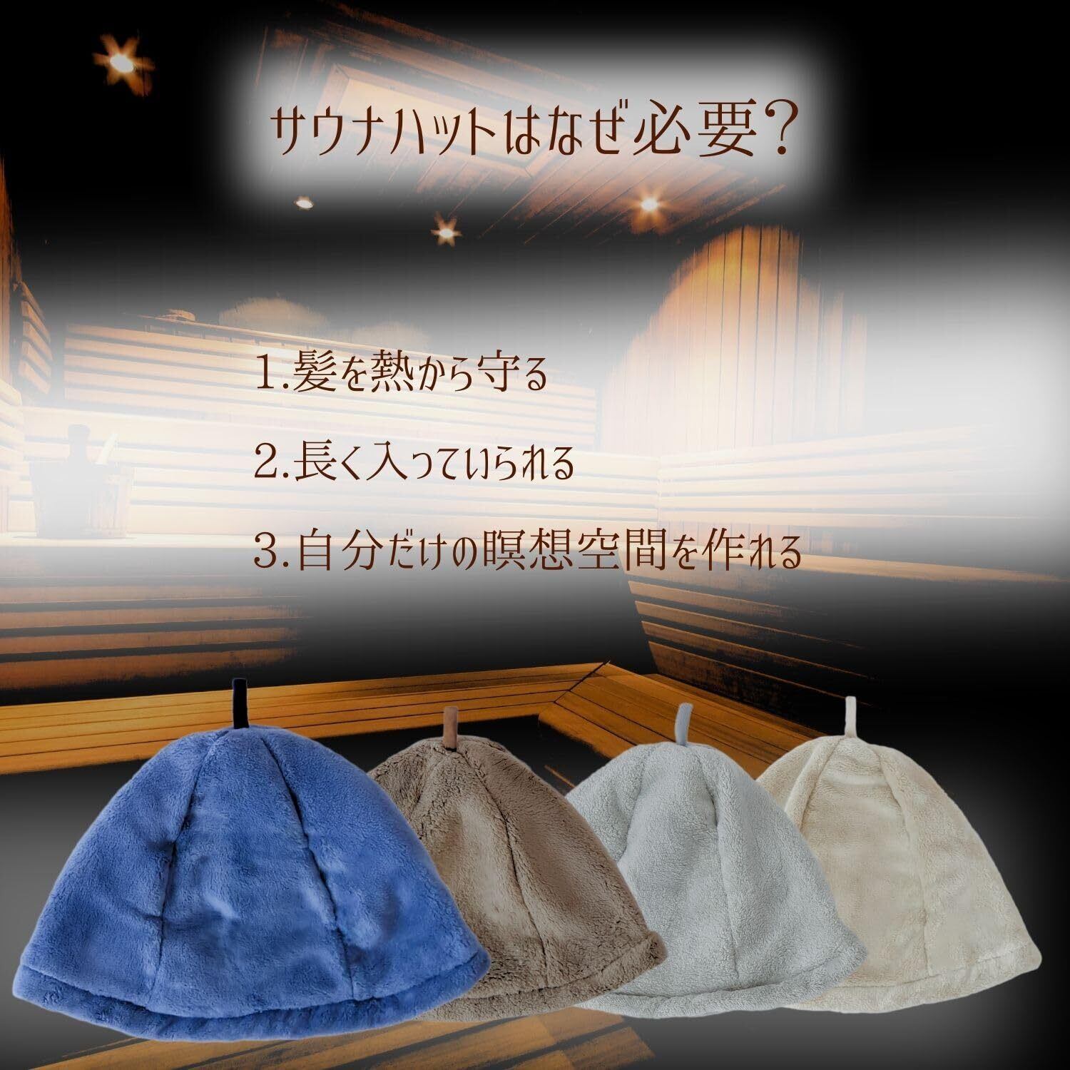 サウナをさらに楽しくするサウナ帽とクッションマットのセット。 深めの帽子でしっかり髪を高熱や乾燥から守り、長くサウナタイムを楽しめます。