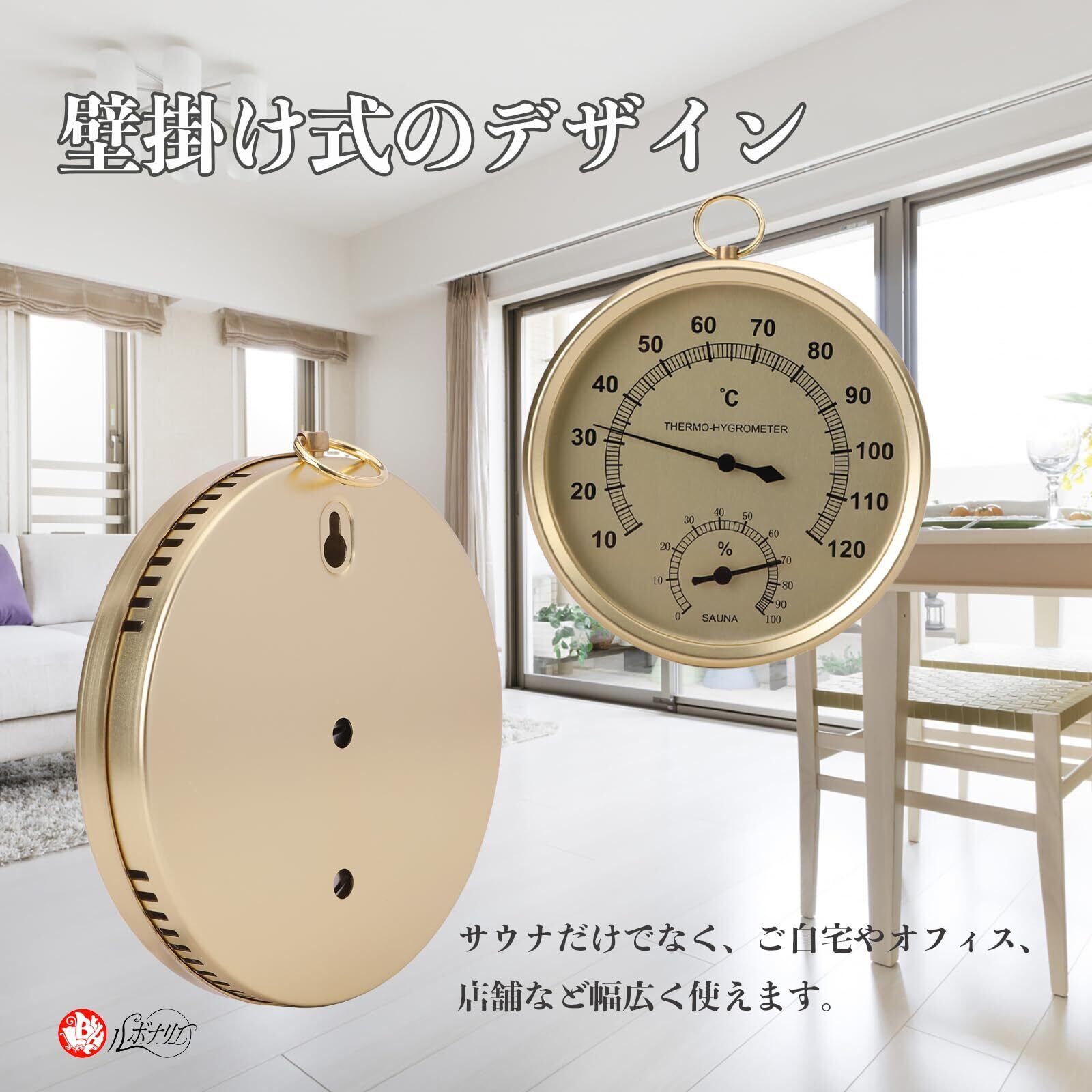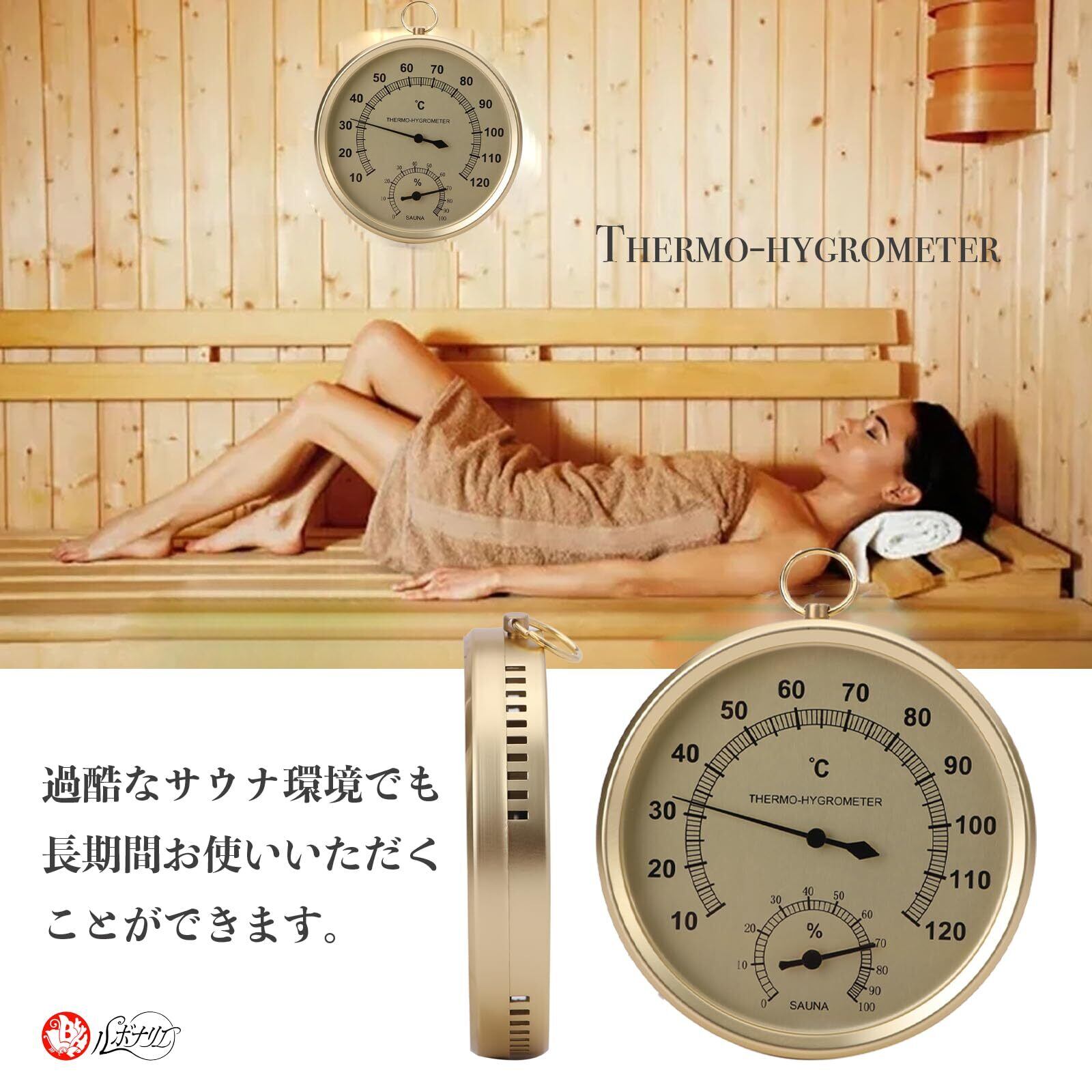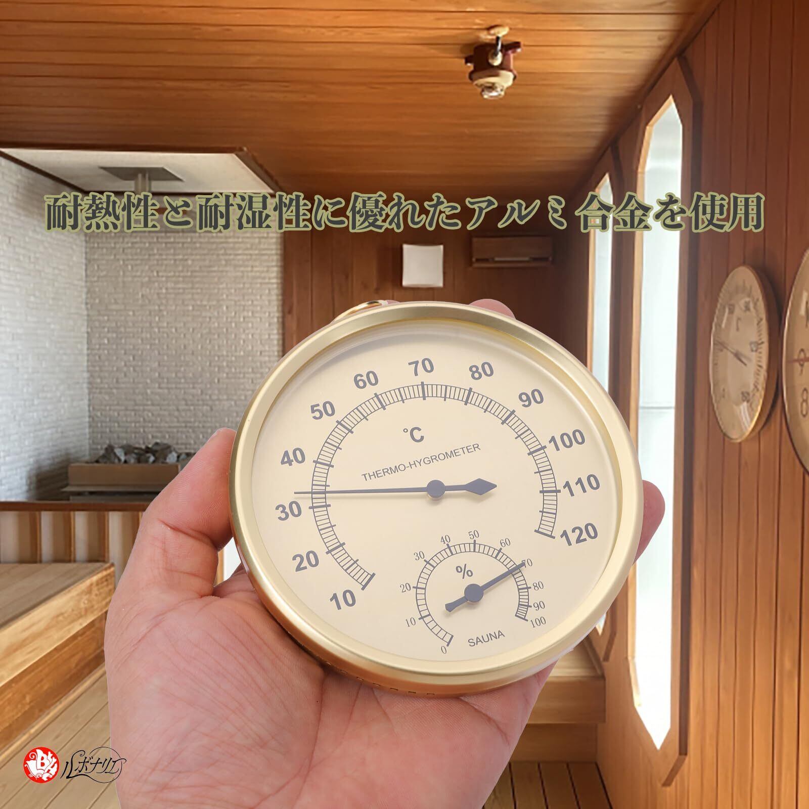 【在庫処分】サウナ 温度湿度計 温度計 湿度計 高精度 湿度温度計 屋外 壁掛け 壁掛け式 (ゴールド)