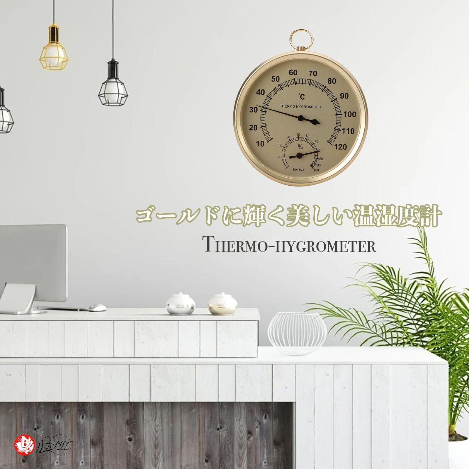 サウナ 温度湿度計 温度計 湿度計 高精度 湿度温度計 屋外 壁掛け 壁掛け式 (ゴールド)