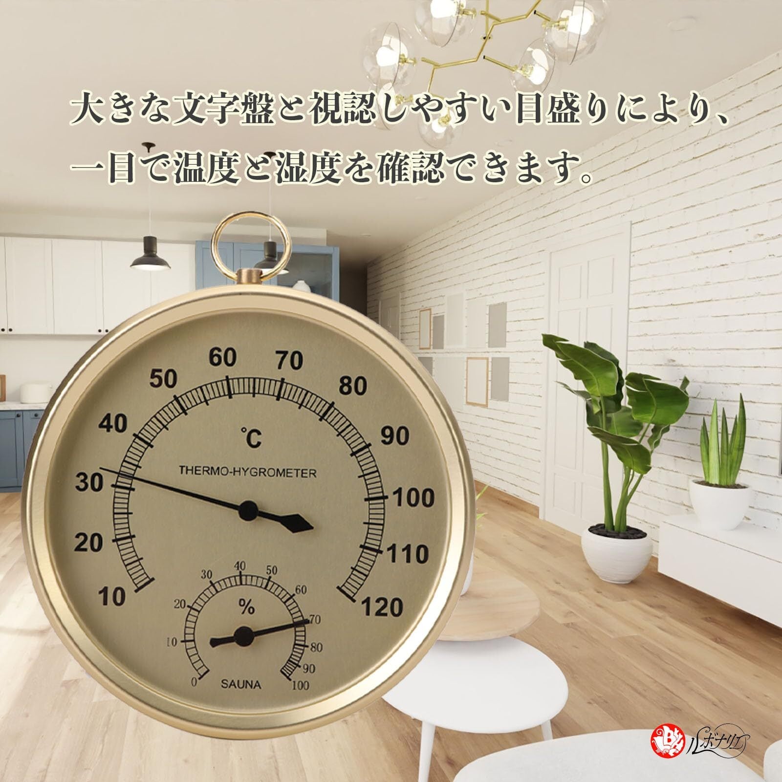・大きな文字盤と視認しやすい目盛りにより、一目で温度と湿度を確認できますので、日本に多い高温低湿のドライサウナや近年流行している低音高湿のフィンランド式サウナなどお好みに合わせた快適な温湿度の調整を的確に行うことができます。