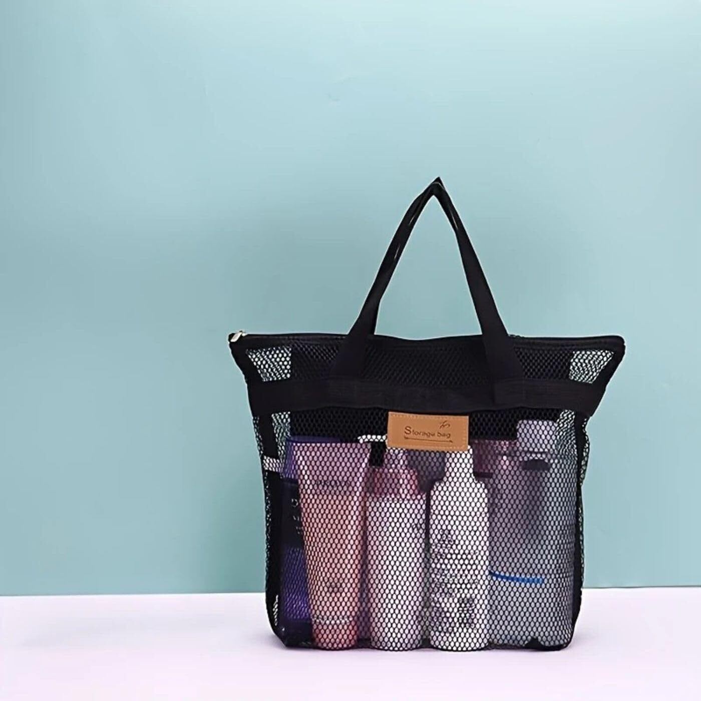 【数量限定】[Freelii] メッシュバッグ スパ ビーチ ヨガ サウナ 温泉 水泳 トートバッグ 砂浜 旅行 ポケット付き ストラップホール 折り畳み可能 バッグインバッグ 大容量 軽量