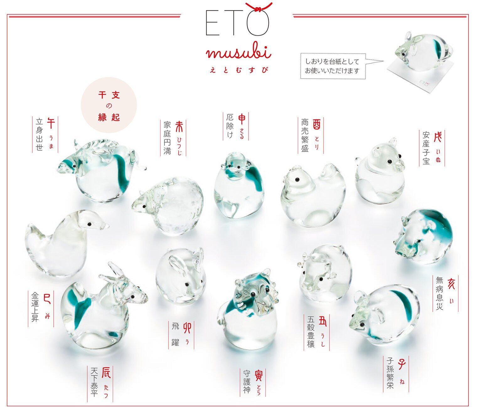 古くから縁起物として親しまれてきた干支を透明感のあるガラスの置物に仕上げました。