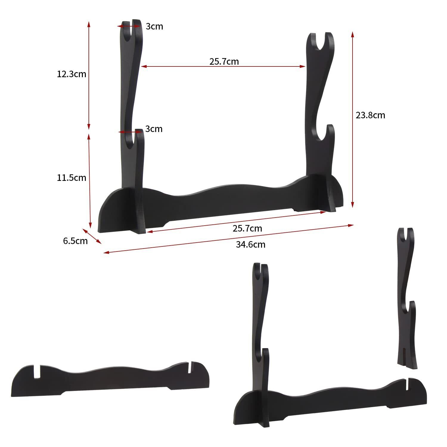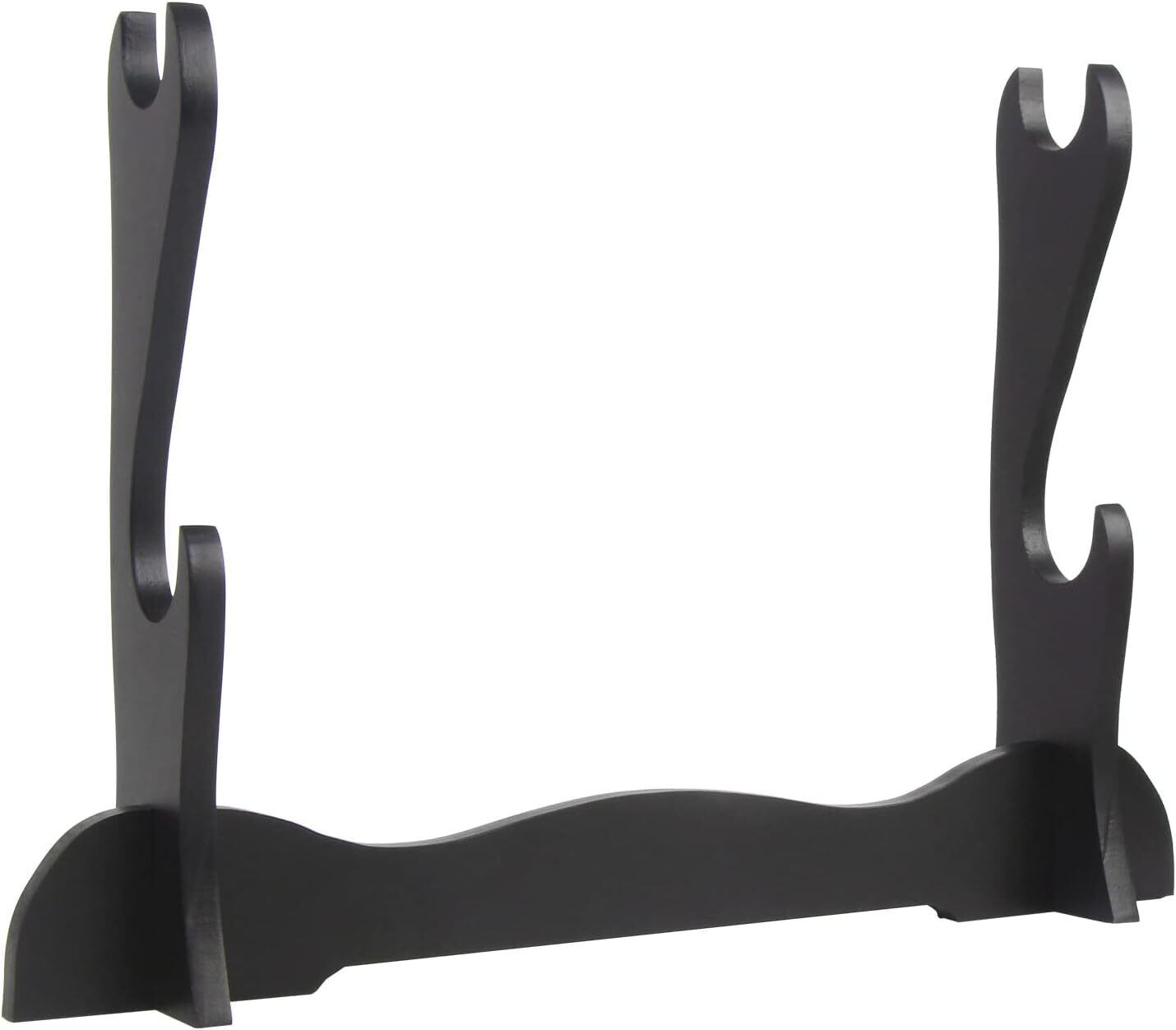 DERAYEE 刀掛け 刀置き 木製 2本掛け 収納 刀台 木剣 木刀 置き 居合刀 台座付き 木刀 黒塗り (2本掛け)