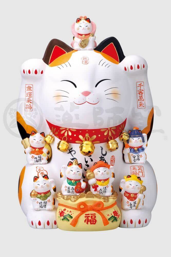 【新春セール】薬師窯(yakushigama) 錦彩七福神招き猫(20号) 【7500】 運気アップ 風水 置物 インテリア 猫 ねこ ネコ 白 サイズ:高さ60(cm)