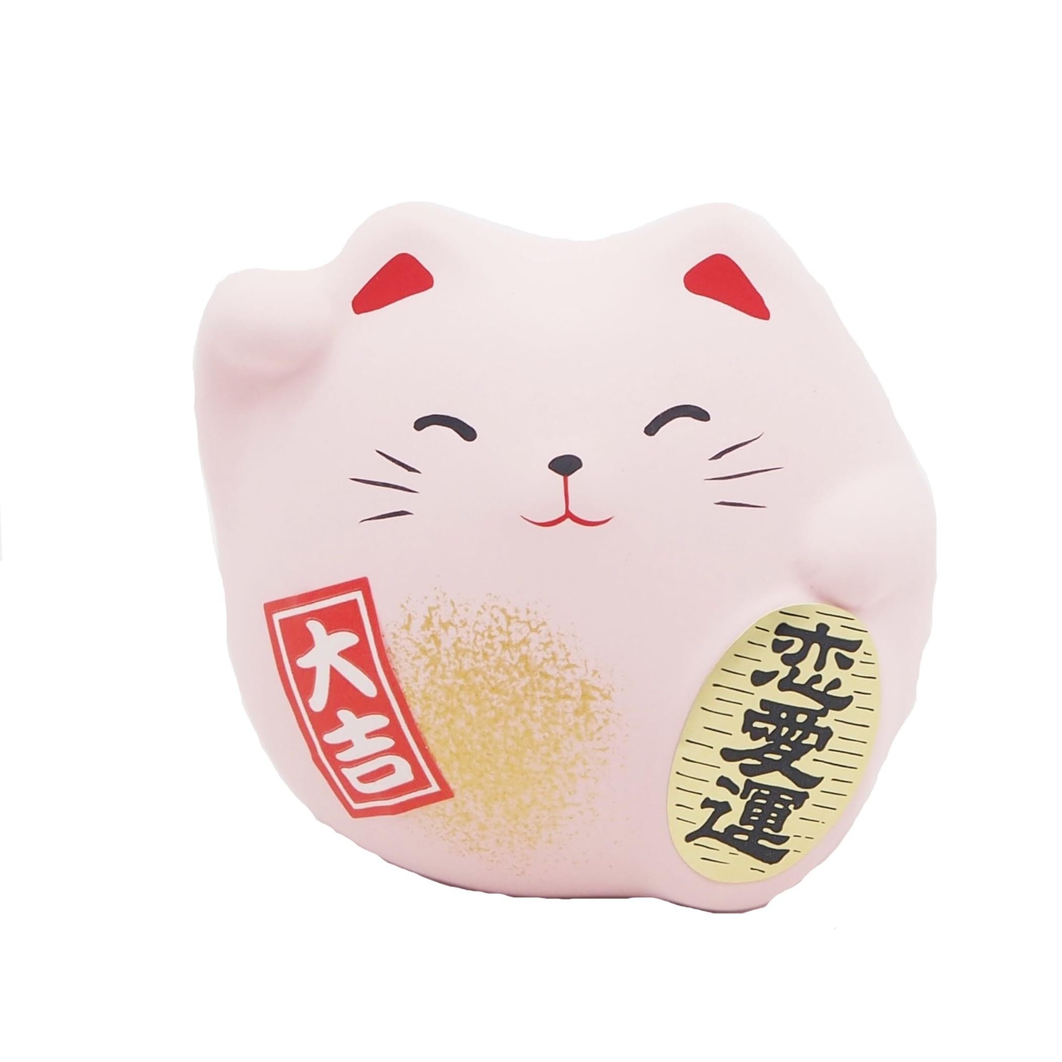 マルヨシ陶器 風水置物 招き猫 ピンク(恋愛運)M7882