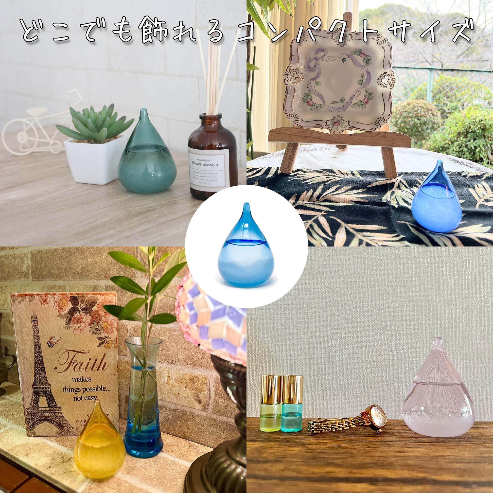 【設置場所について】ストームグラスは気温の変化で結晶が特に変化するため、例えば玄関などがオススメです。結晶の変化に関わらず、好きな場所で愛でたい場合は、日が当たらず空調が直接当たらない場所に置いてください。