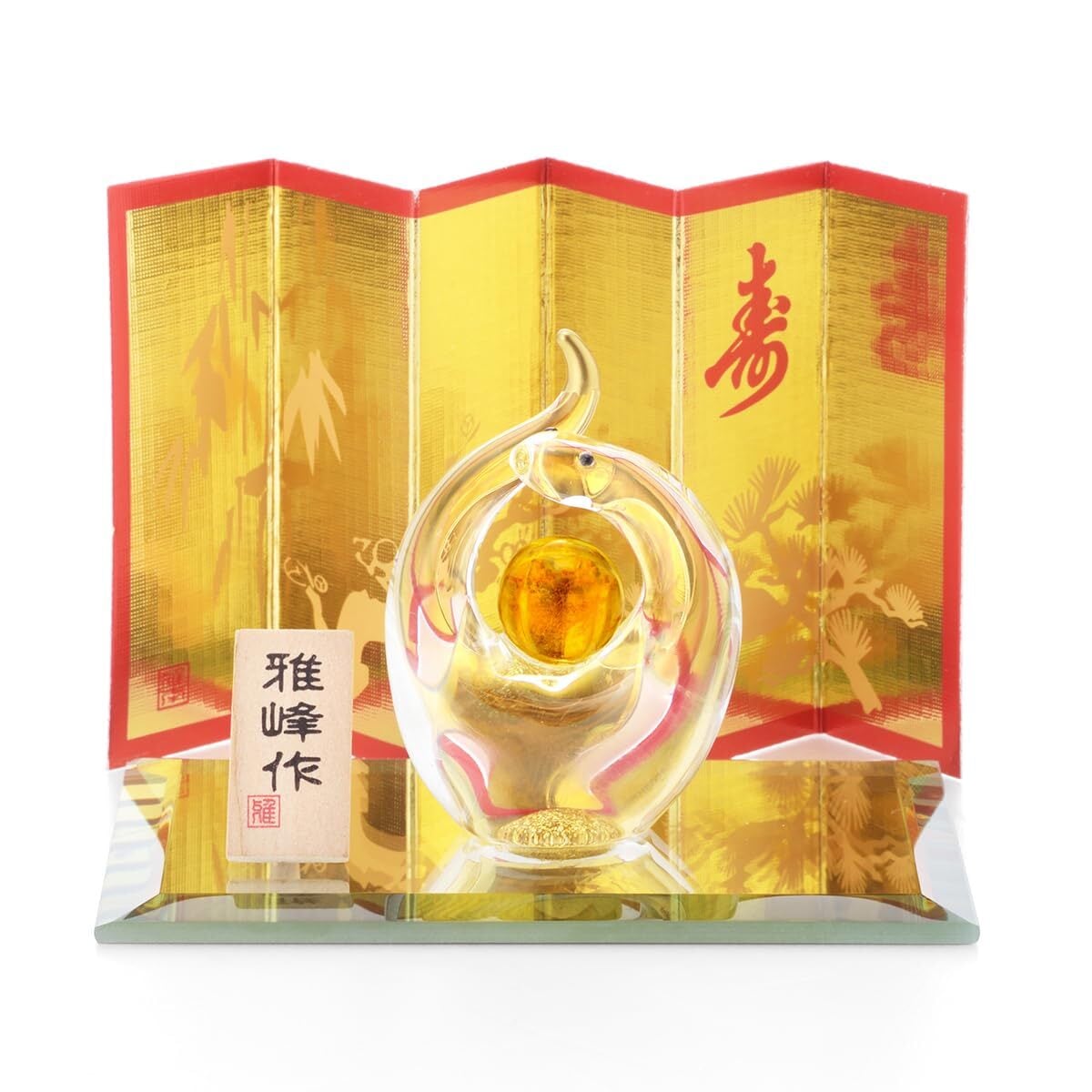 縁起が良いと言われている巳に金の玉を持たせることで更に縁起の良さがアップ!本体と台座の両方がガラス製で美しく光ります。屏風を外せば年中飾ることが出来ます。