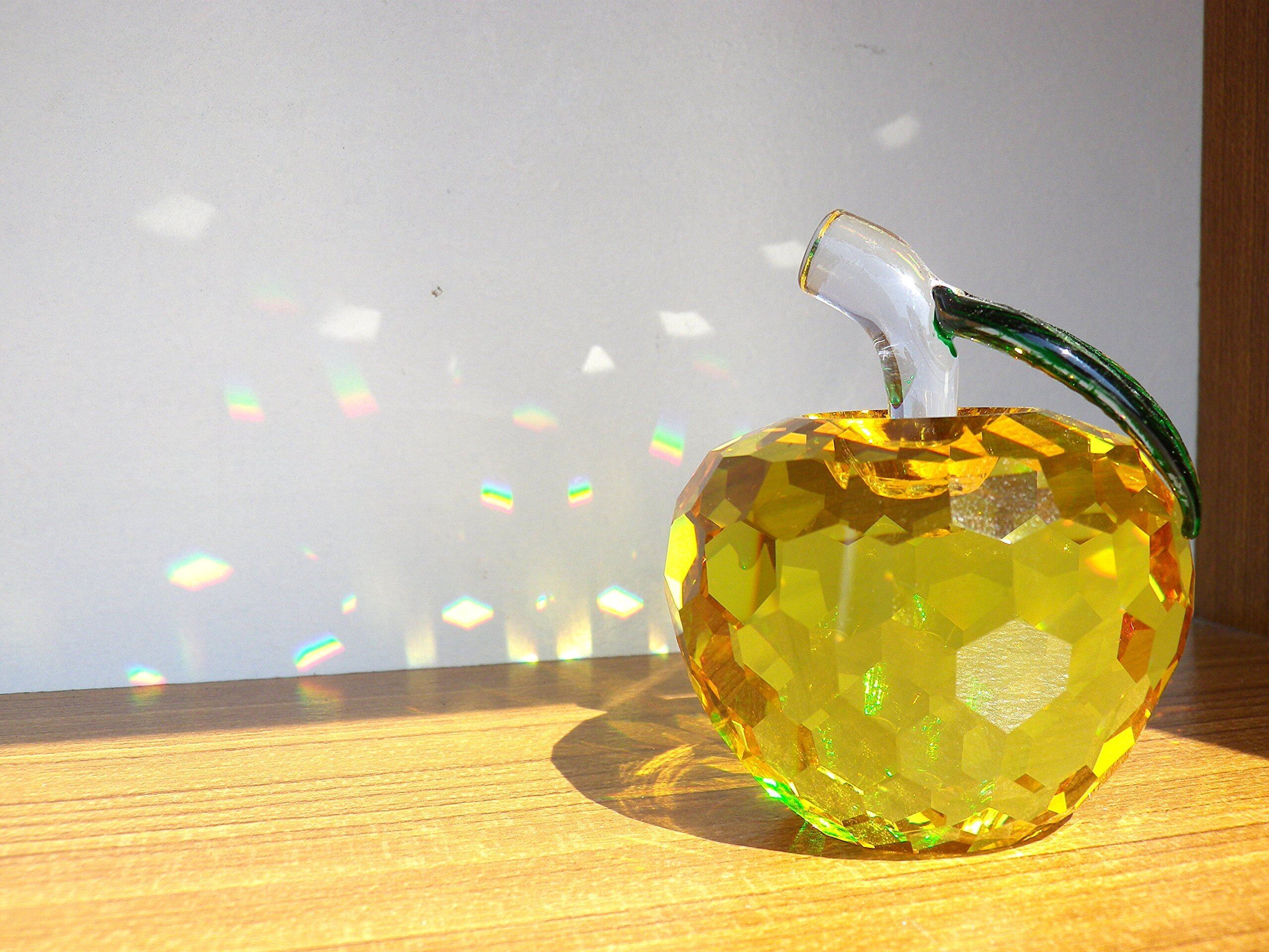 【人気商品】[KKD] クリスタル ガラス 林檎 りんご 置物 アップル インテリア 風水 サンキャッチャー 雑貨 オブジェ (60mm イエロー)