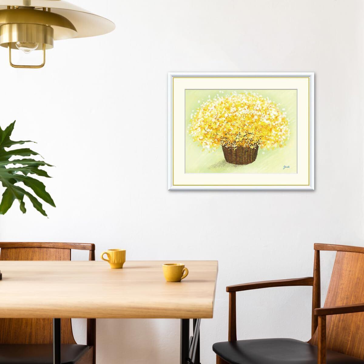 絵画 J3-A003 額付き 額入り しあわせのブーケ 洋美 「明るいイエローのブーケ」現代作家 風水インテリア アート 花 (f4/42×34cm, 黄)