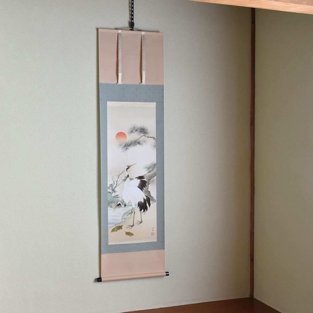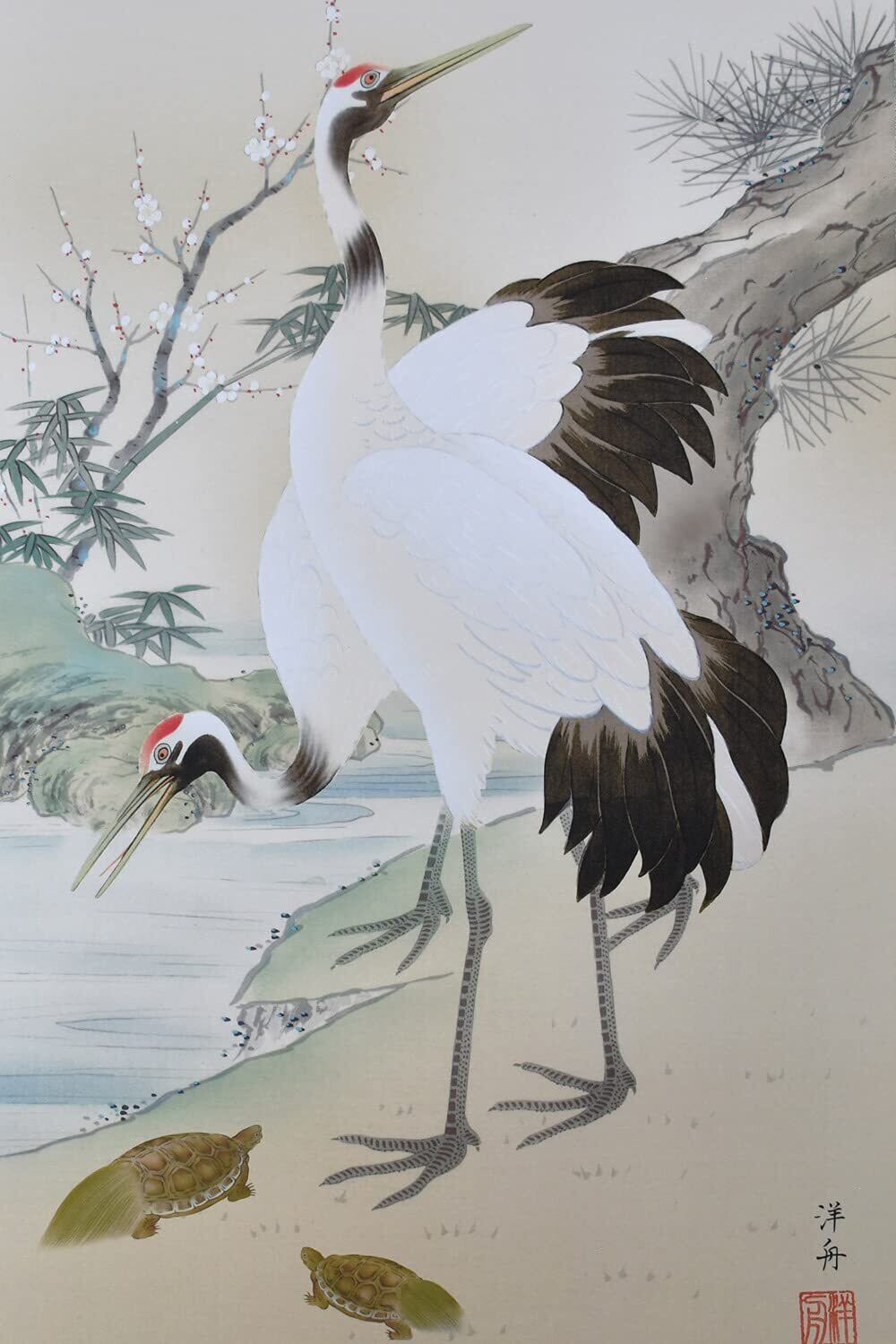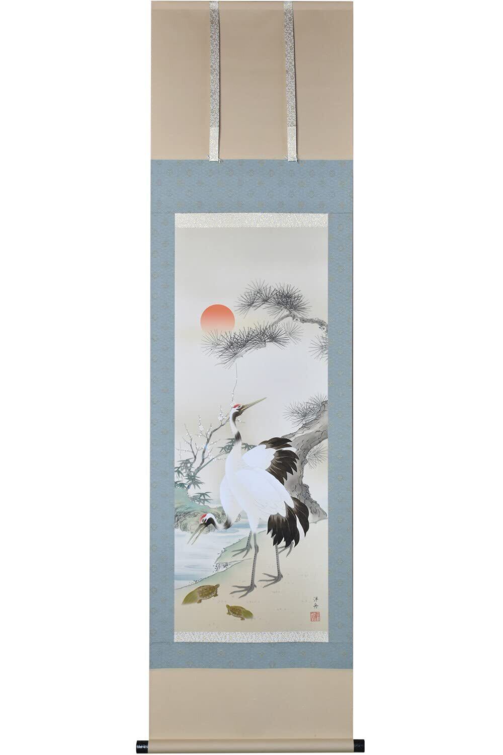 晴れの街ギャラリー 掛け軸 松竹梅鶴亀 小野洋舟 尺三 幅44.5 x 高さ164cm