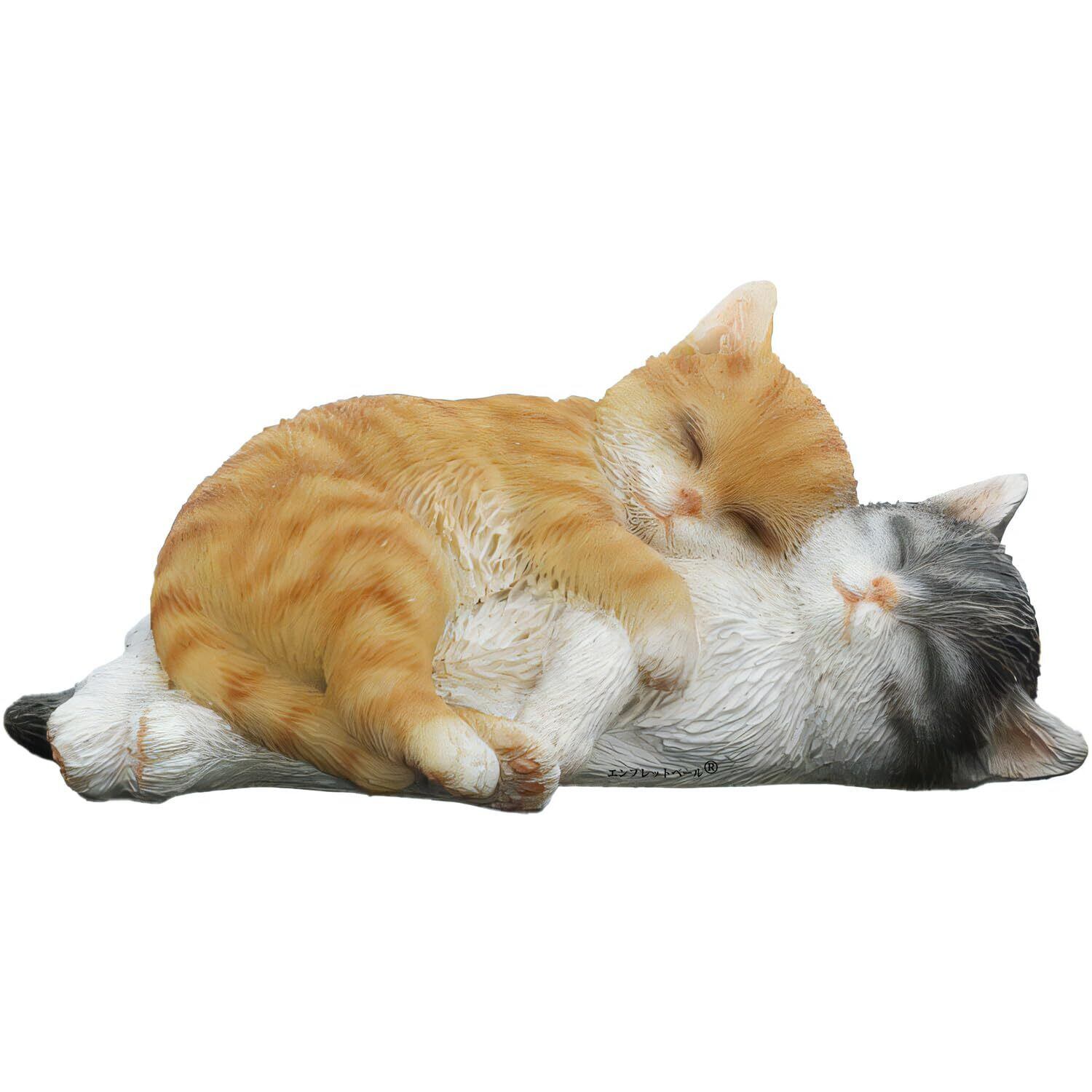 リアルすぎてドキッとするほど本物そっくりなネコの ガーデンオーナメント おひるね 茶トラ白×サバ白 子猫 猫好きな人へのプレゼント オブジェ 置物 エンプレットベール