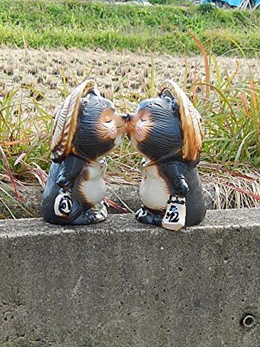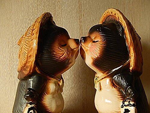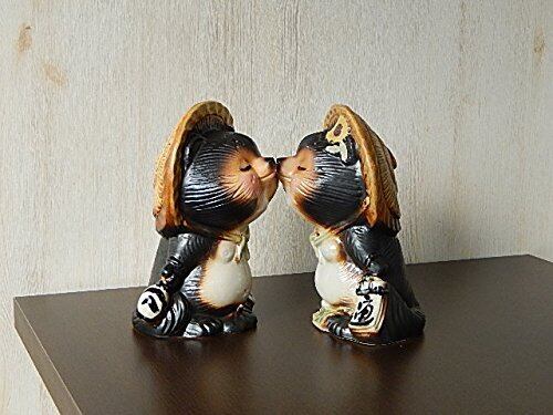 信楽焼の 手作り 陶器の 愛してるチュー狸くん 仲良く チュー狸 お好みの向きで ホッペニ チューもできます。