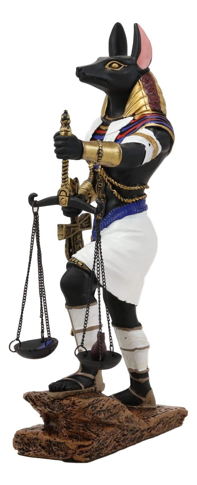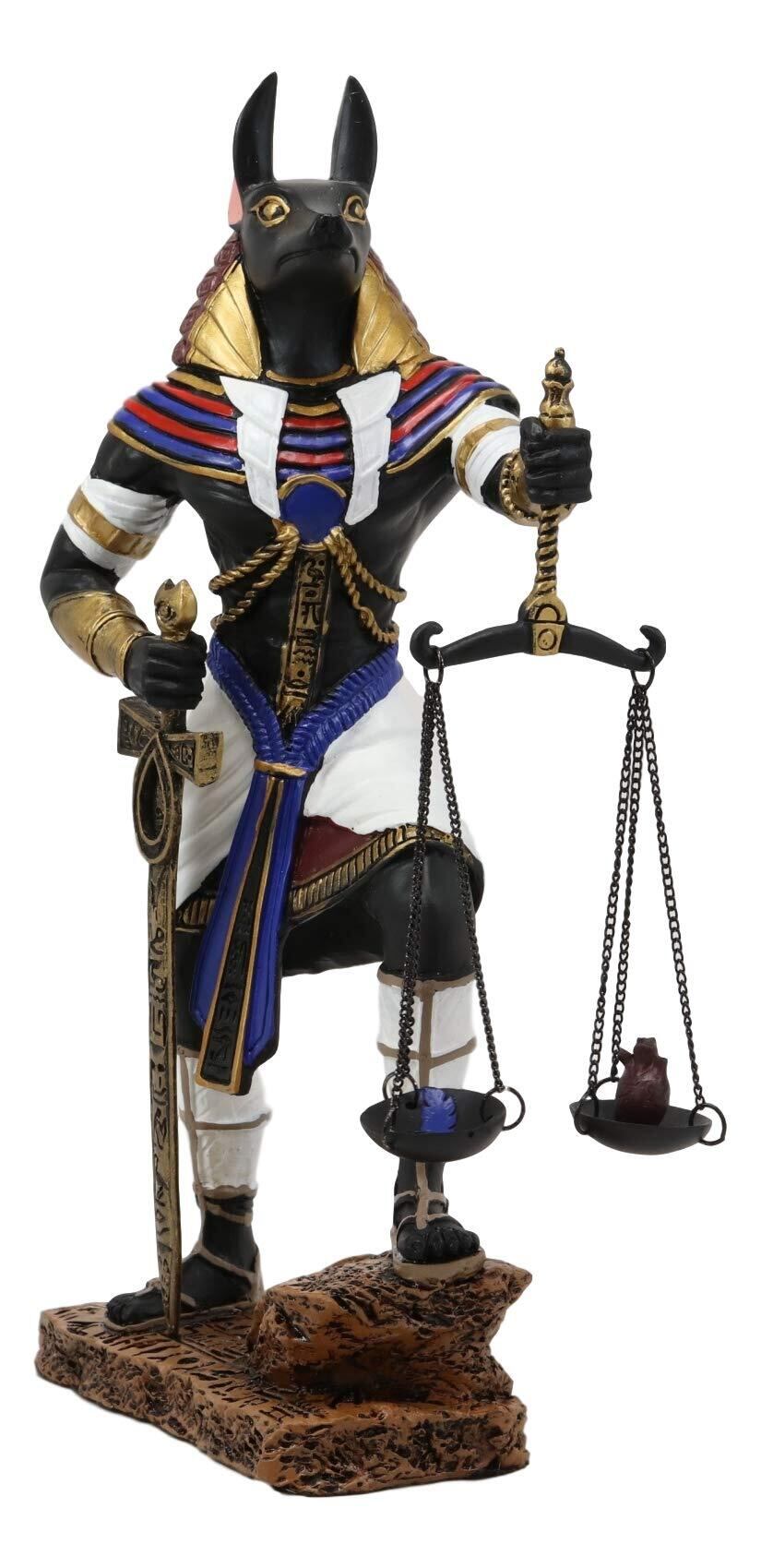 エブロス 古代エジプト神アヌビス 正義のスケール付き 死者と来世の神々 ダチョウの羽に対する心の重さを量る 高さ10インチ (鮮やかな色)