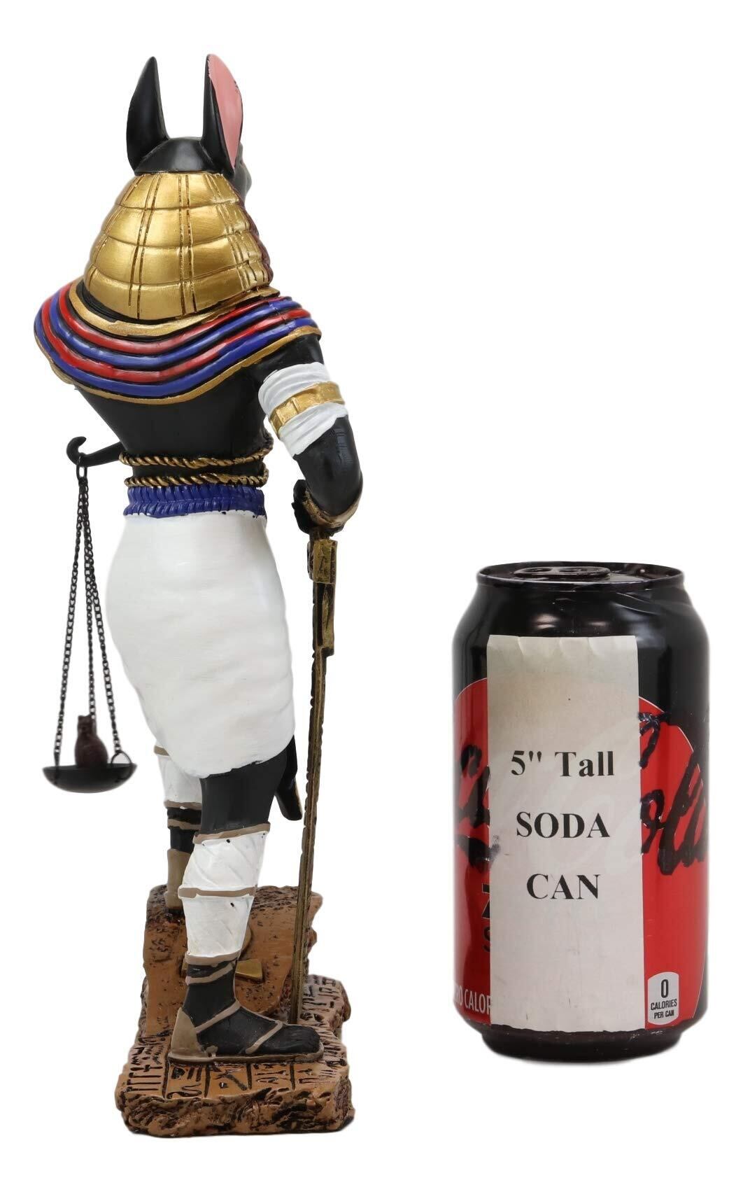 正義のスケールと裁きの剣を持つアヌビスの詳細な像は、高さ約10インチ、幅6.25インチ、奥行き3.5インチです。 重さは約1.5ポンド。