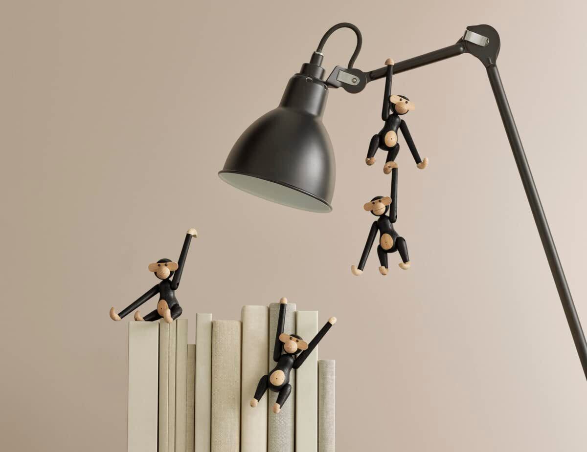 北欧デンマークのデザイナーKay Bojesen(カイ・ボイスン)がデザインしたMonkey(モンキー)は1951年の発表以降、子供だけでなく大人からもずっと愛され続けている木製の玩具おサルさん。 現在は本棚やラックなどに 引っ掛けて飾る愛嬌のある木製玩具、木製オブジェとして大人気のモンキーミニサイズのブラックです。 約10㎝ほどの小さなおサルさんはいろんな所に飾れる可愛いおサルさんです。 ぜひ家族に一員に加えてあげてください。