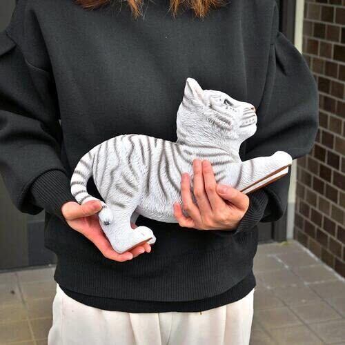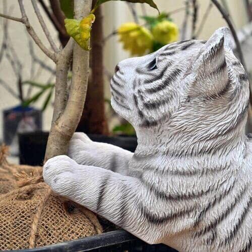 ホワイトタイガーの赤ちゃんの置物です。 今にも飛びついてきそうなリアルさがあります。 お庭や玄関先に飾ると可愛いです。 珍しいホワイトタイガーの赤ちゃん、いかがですか?