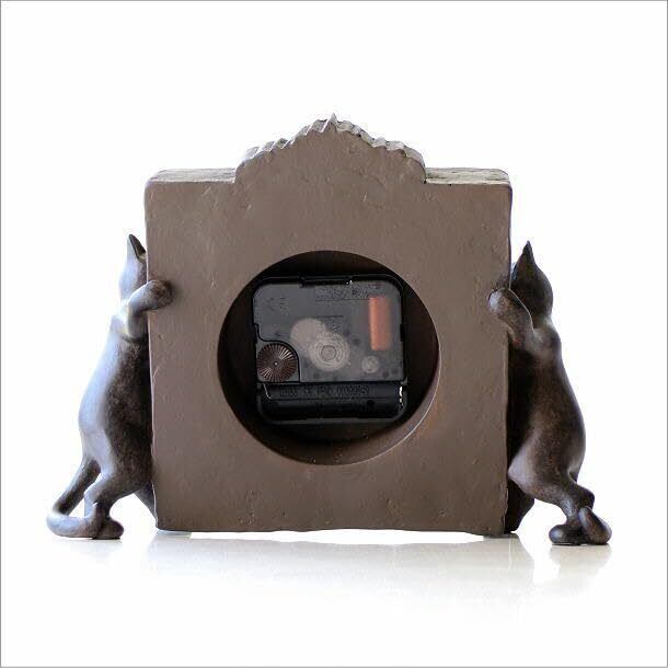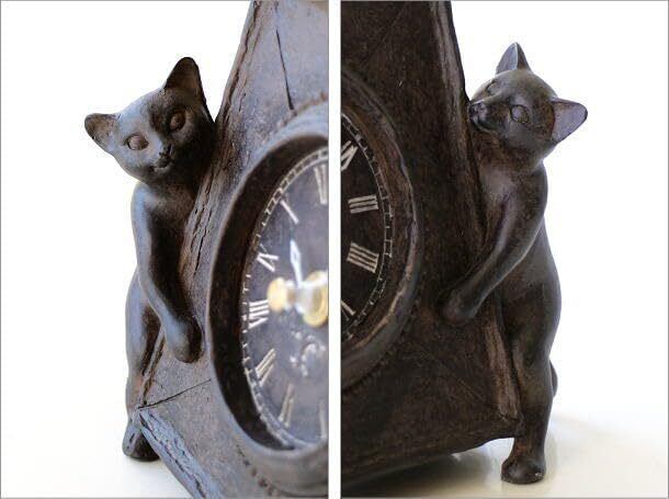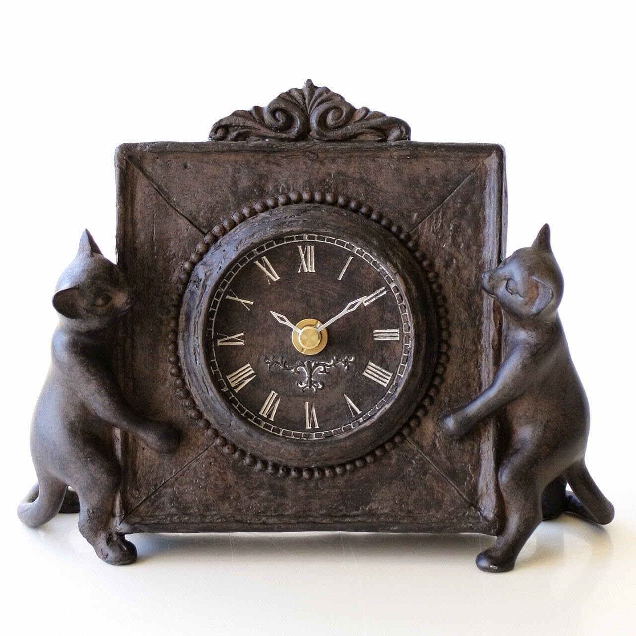 置き時計 アナログ 猫 おしゃれ 小さい 卓上 時計 コンパクト 21×15cm レトロ アンティークな時計とネコさん