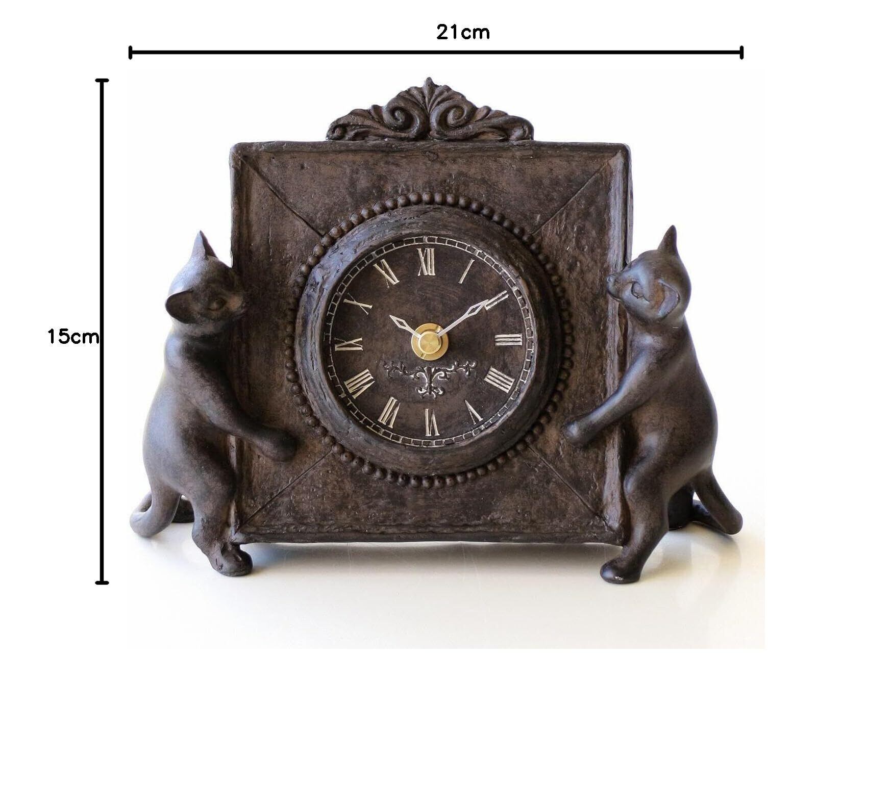【人気商品】置き時計 アナログ 猫 おしゃれ 小さい 卓上 時計 コンパクト 21×15cm レトロ アンティークな時計とネコさん