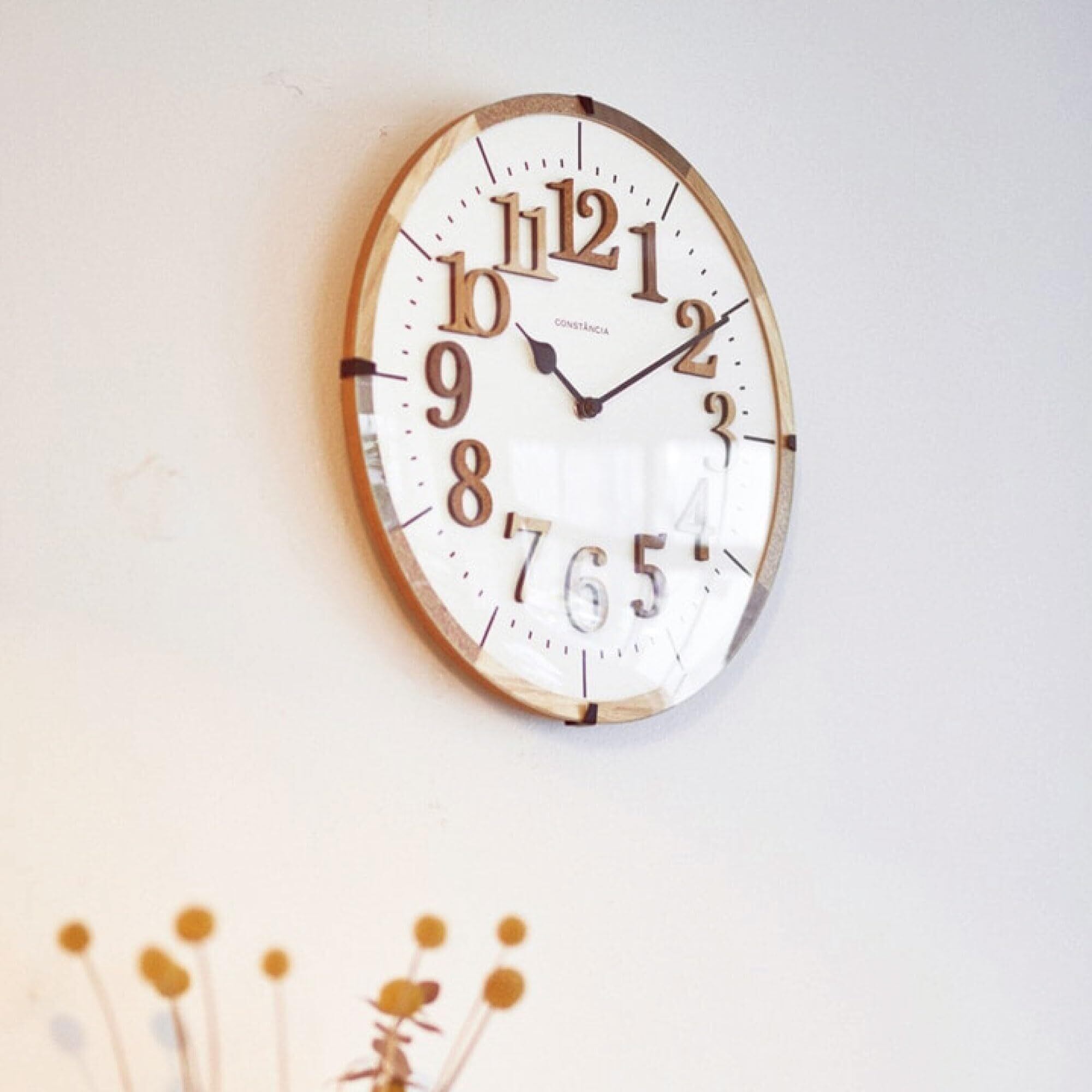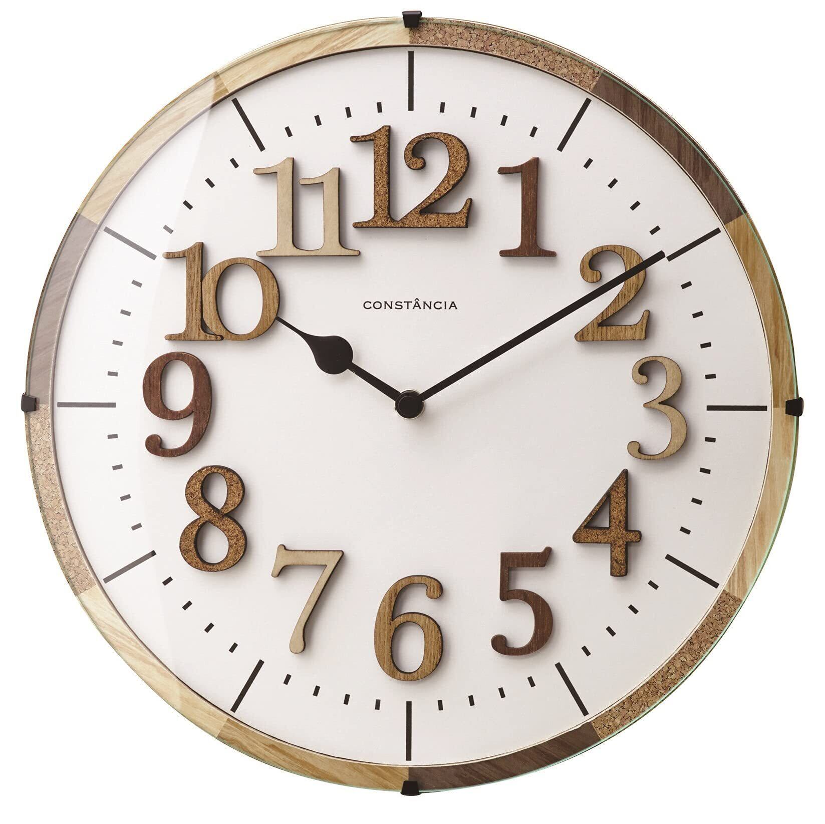 【商品の仕様】 サイズ:直径30.5cm、奥行4cm、/材質:木、コルク、MDF、ガラス/重量:0.8kg/壁掛け用木ネジ付 ※充電池はお使いいただけません/単3乾電池(別売り)