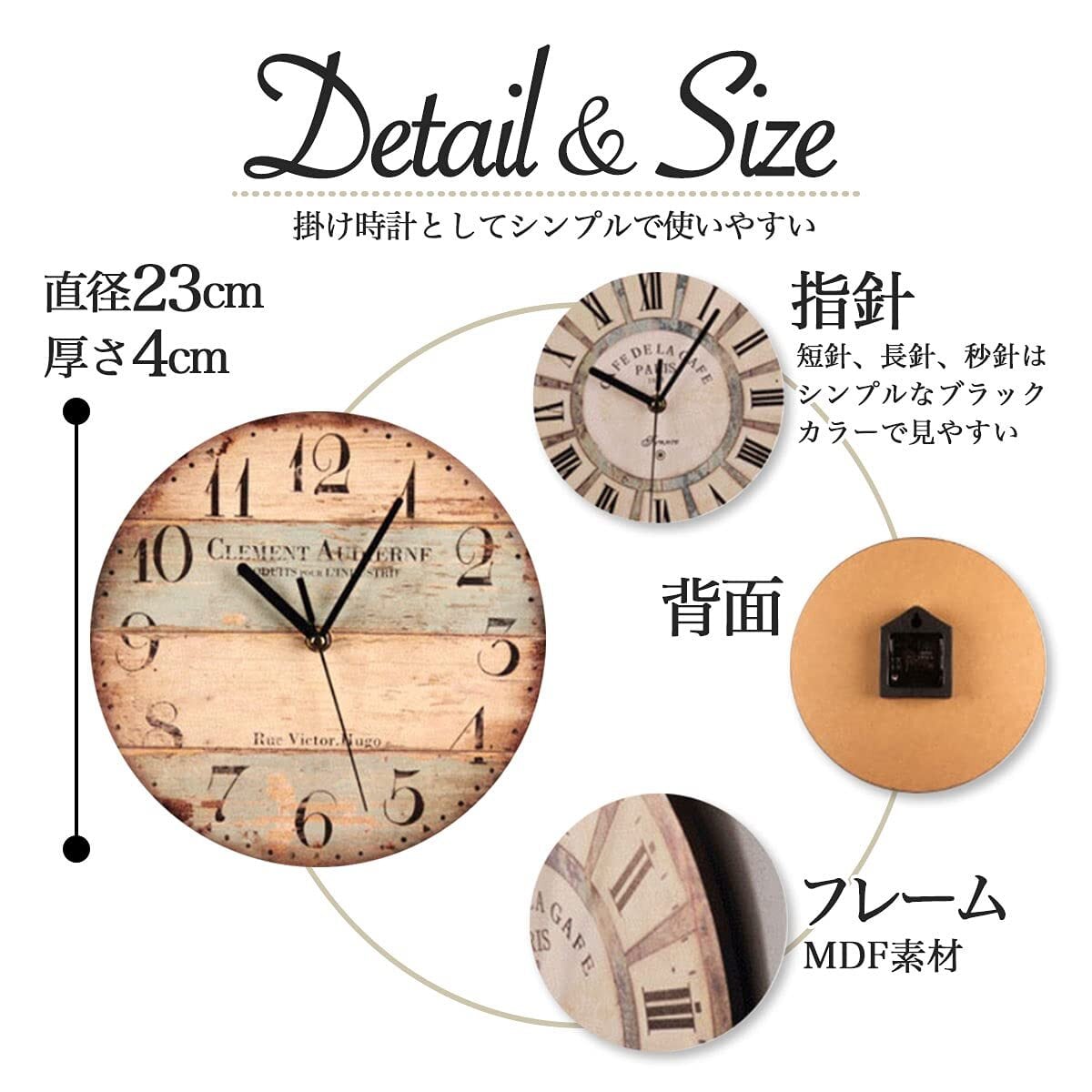 【クローブキューブ】アンティーク風 クロック オールド アメリカン 掛け時計 シャビーシック 北欧 9種類 (オールドタウン)