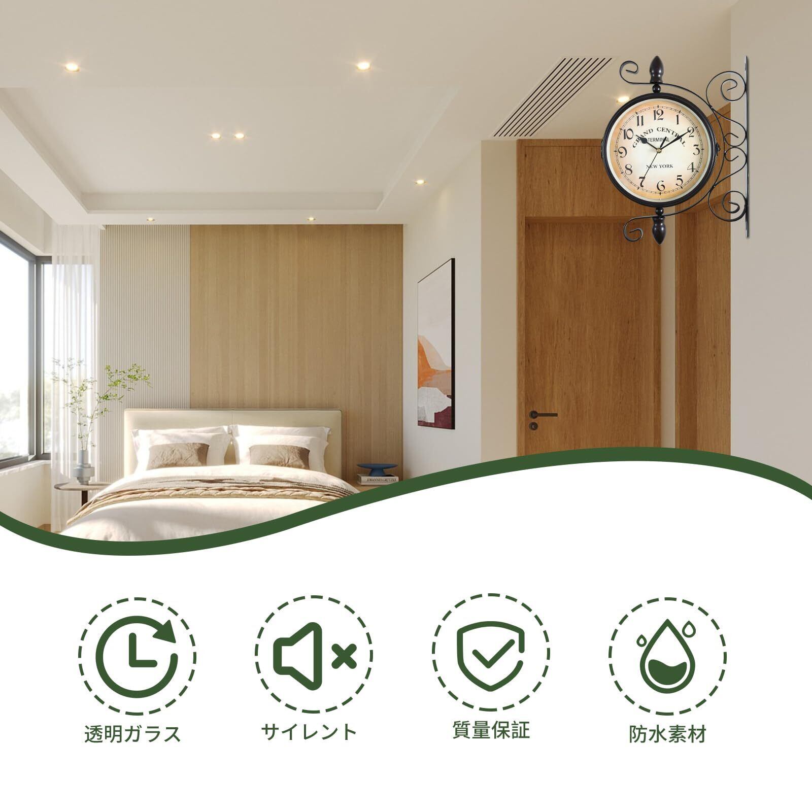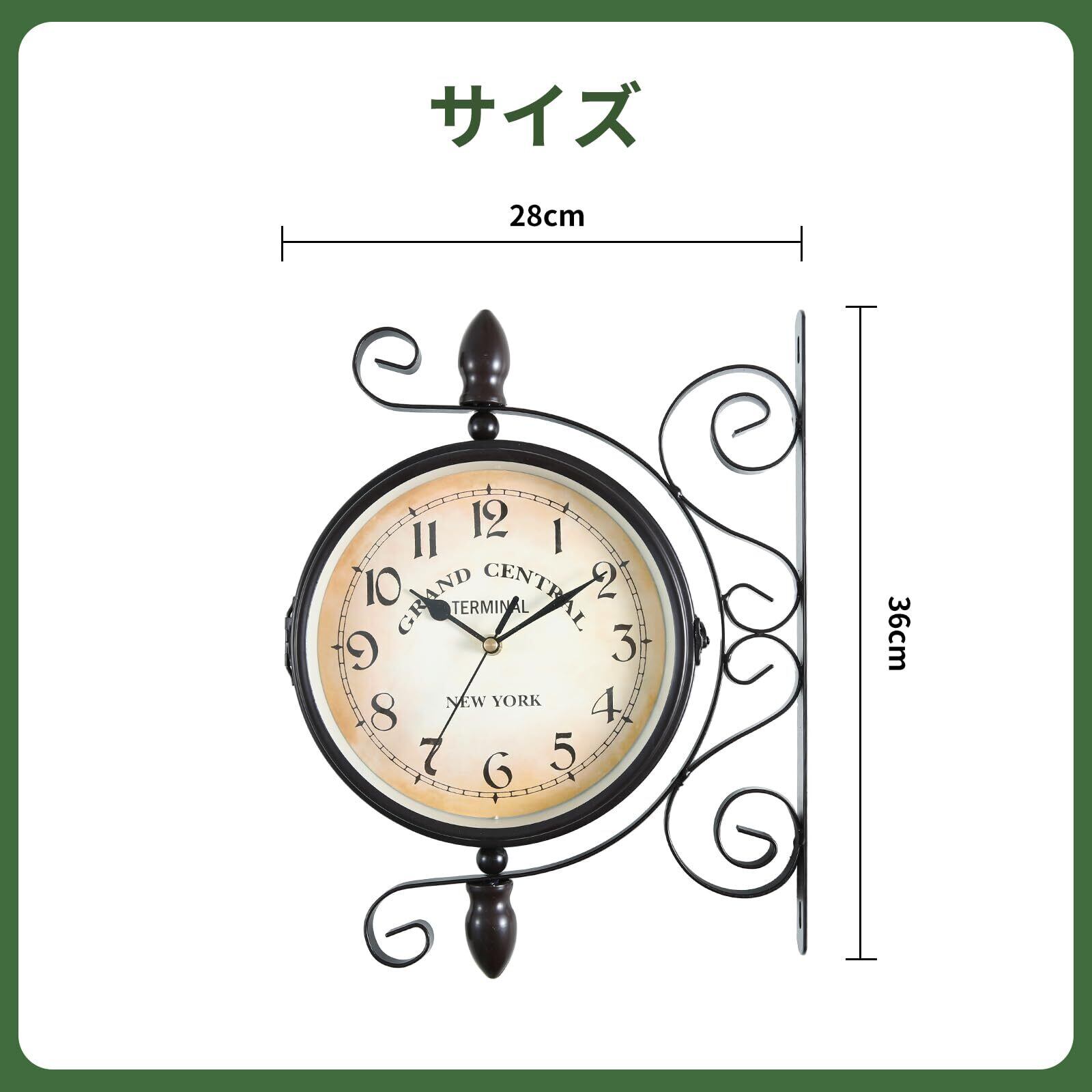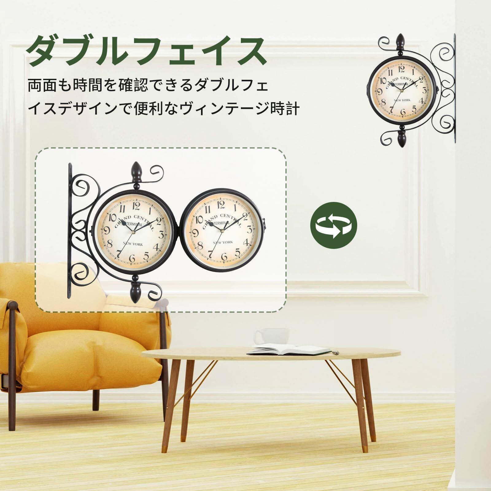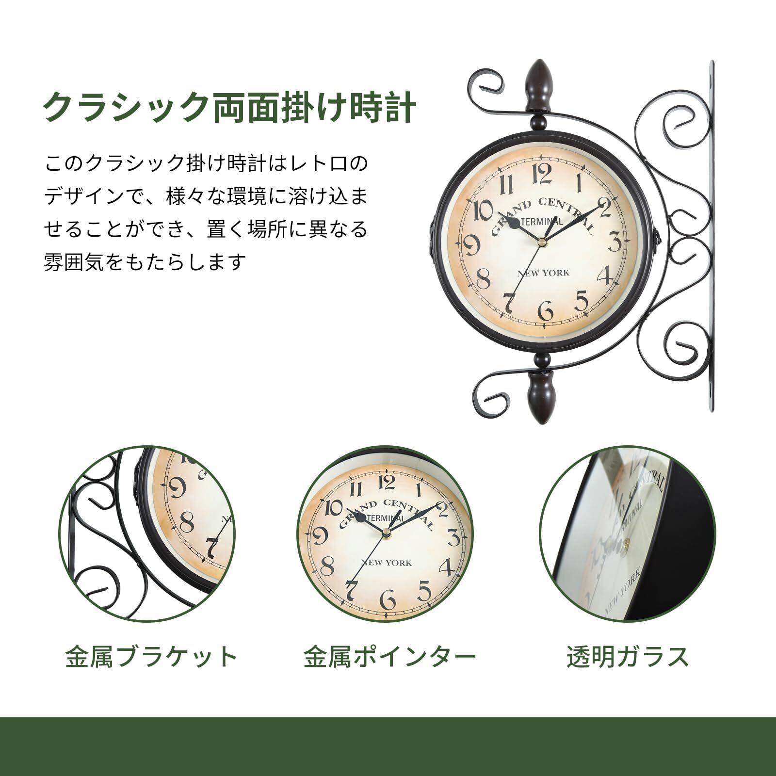 クラシック両面掛け時計 掛け時計 ウォールクロック 時計 両面 ダブルフェイス 金属製 ヴィンテージ ヨーロッパスタイル 欧風 アラビア数字文字盤 サイレントムーブメント 駅 リビングルーム 廊下