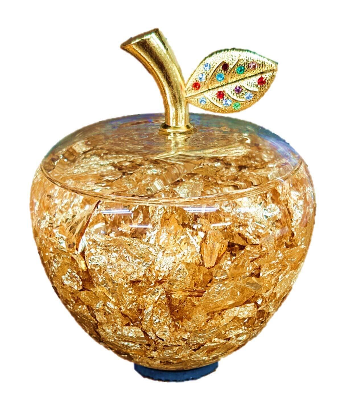 大人気商品!オイルの中に金箔を散りばめた高級感のある作品です。 黄金の林檎で金運もアップです!