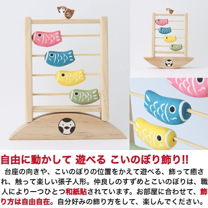 仲良しのすずめとこいのぼりは、職人により一つひとつ和紙貼されています。