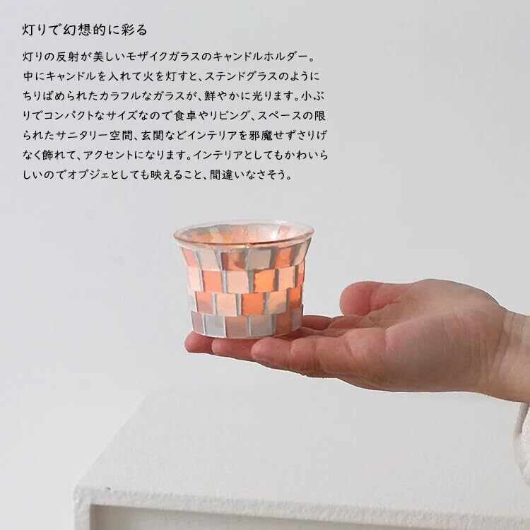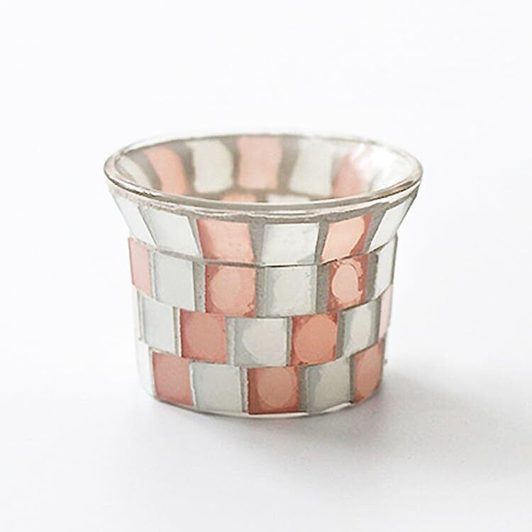 【在庫処分】キャンドルホルダー ガラス キャンドルスタンド ろうそく立て キャンドル 北欧韓国 おしゃれ かわいい テーブルランプ アロマ ろうそく台 モザイク 置物 置き物 ライト インテリア雑貨 韓国雑貨(c-za0518A.ピンク)