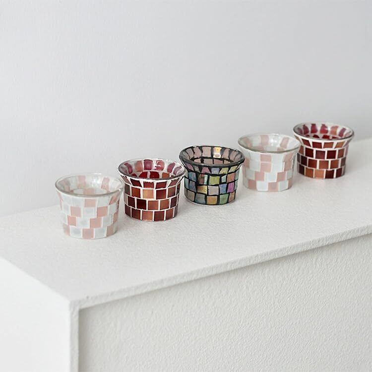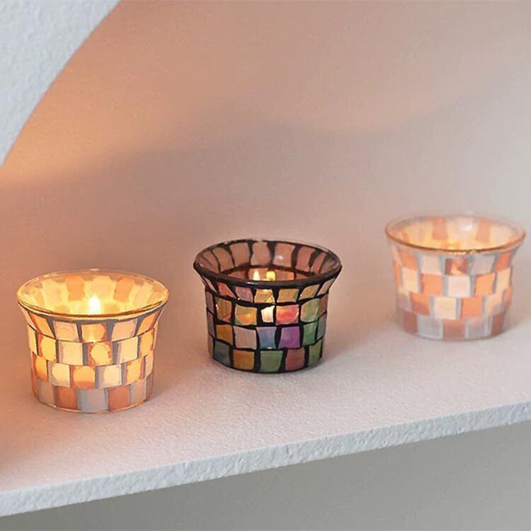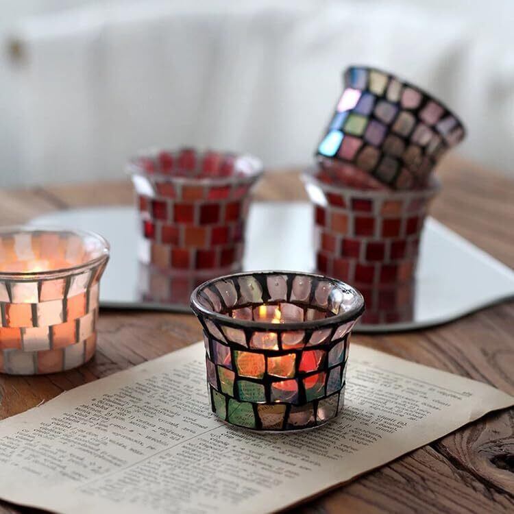 灯りの反射が美しいモザイクガラスのキャンドルホルダー