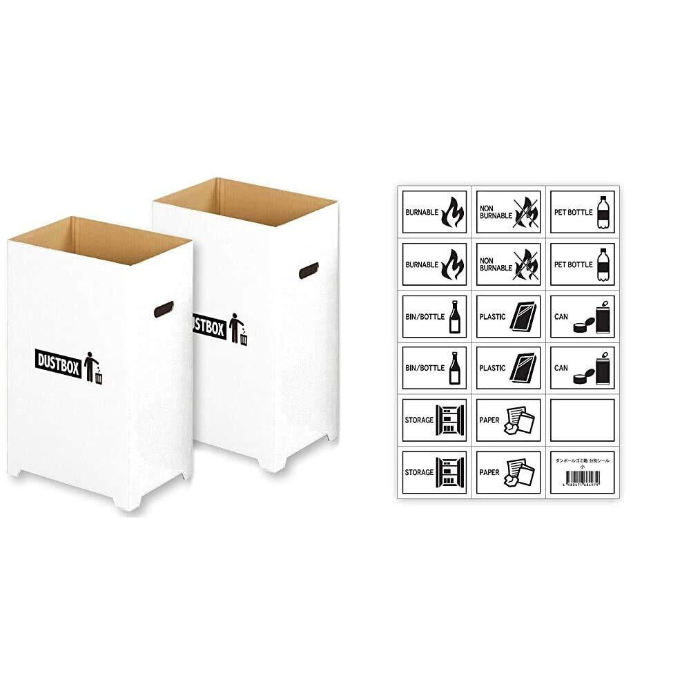 【限定】エムワールド 分別 ゴミ箱 おしゃれ スリム ダンボール ダストボックス 45リットル ゴミ袋 対応 2個組 (汚れに強い 撥水加工) & ダンボールゴミ箱 ゴミ 分別シール 白黒 A4【セット買い】