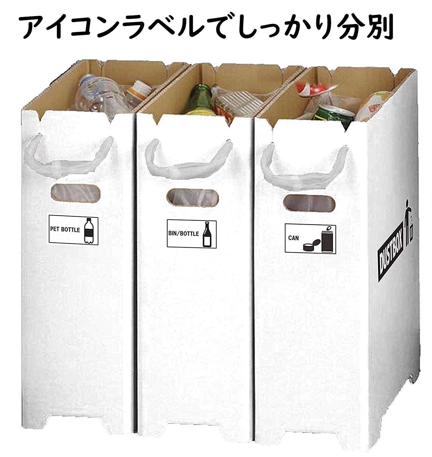 ダンボールだから、直接分別内容を書いたり、切り込みを入れれば、ビニールストッパーもできたりとカスタマイズできる。
