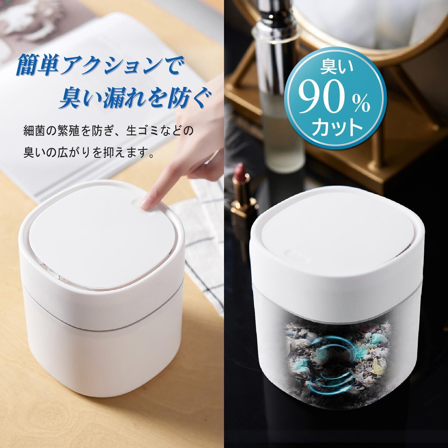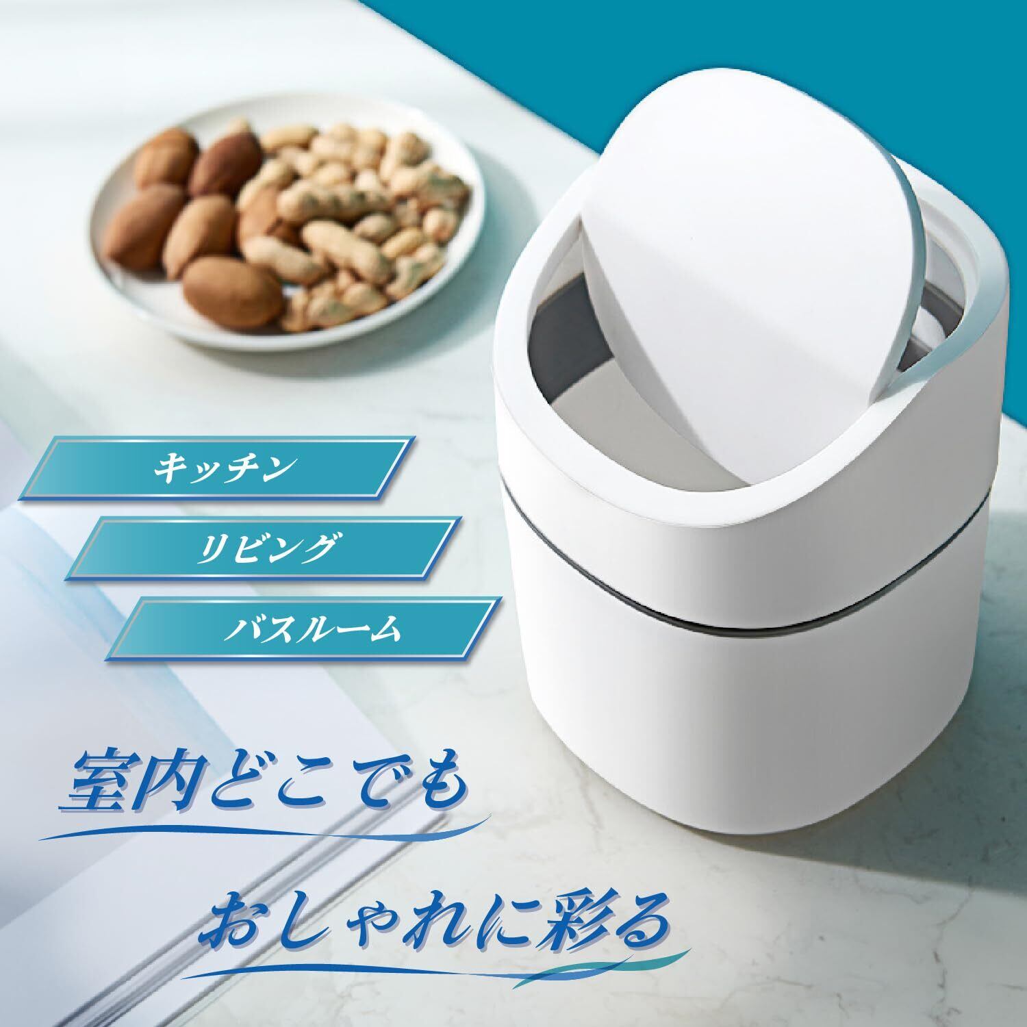 【多用途に対応】ふた付きのゴミ箱で、キッチン、リビング、バスルームなど室内のどこでも使用可能。ホワイトとネイビーの2色展開で、おしゃれなデザインがインテリアに溶け込みます。