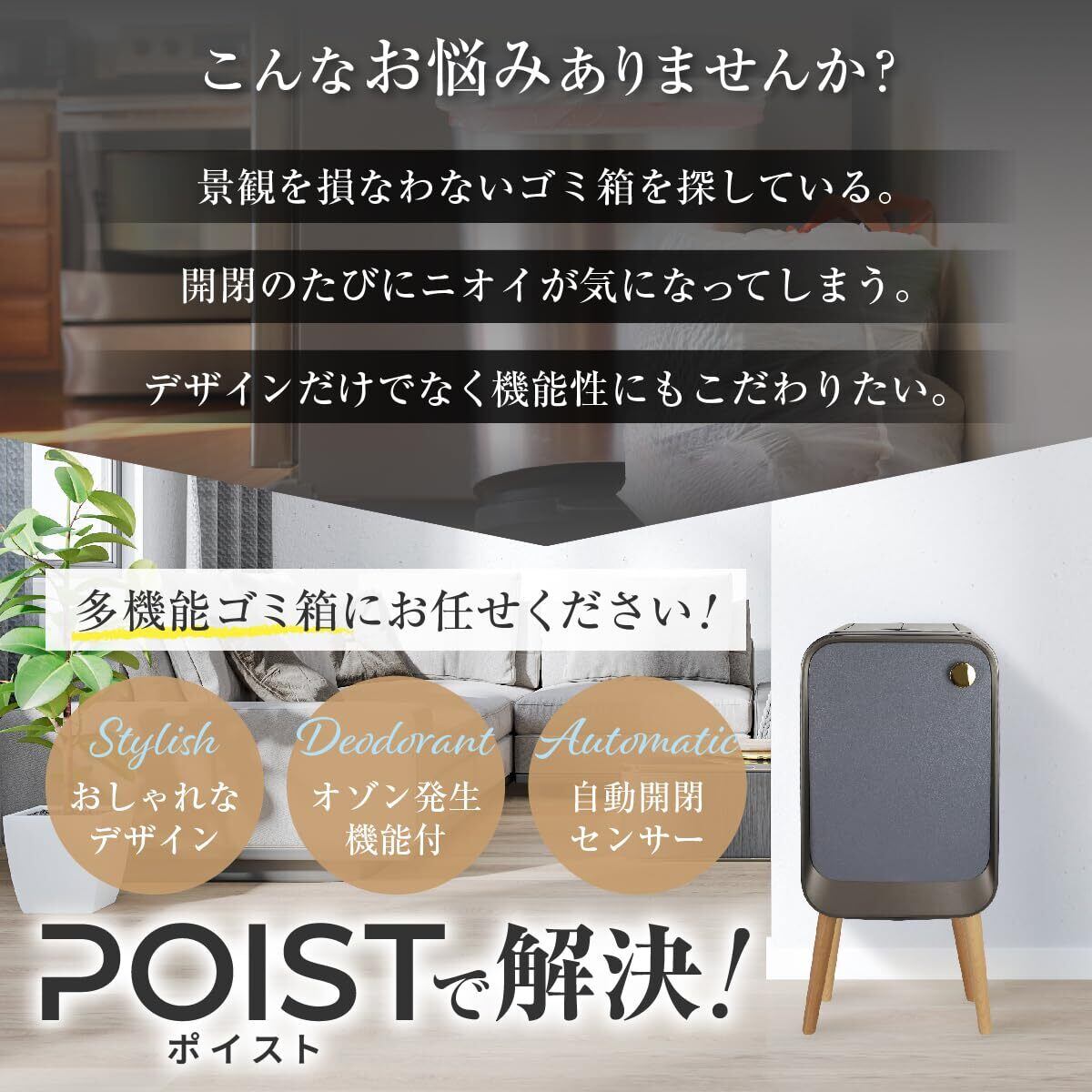 普段使っているゴミ箱について、生活感が出るのが嫌・蓋が無いからいつも匂う・蓋があっても毎回開けるのが面倒くさい・容量を優先すると場所を取る・床を掃除しにくい…といったお悩みはございませんか?様々なゴミ箱のお悩みを解消する「POIST」のご紹介です。縦長のスリム形状で置き場所に困りません。