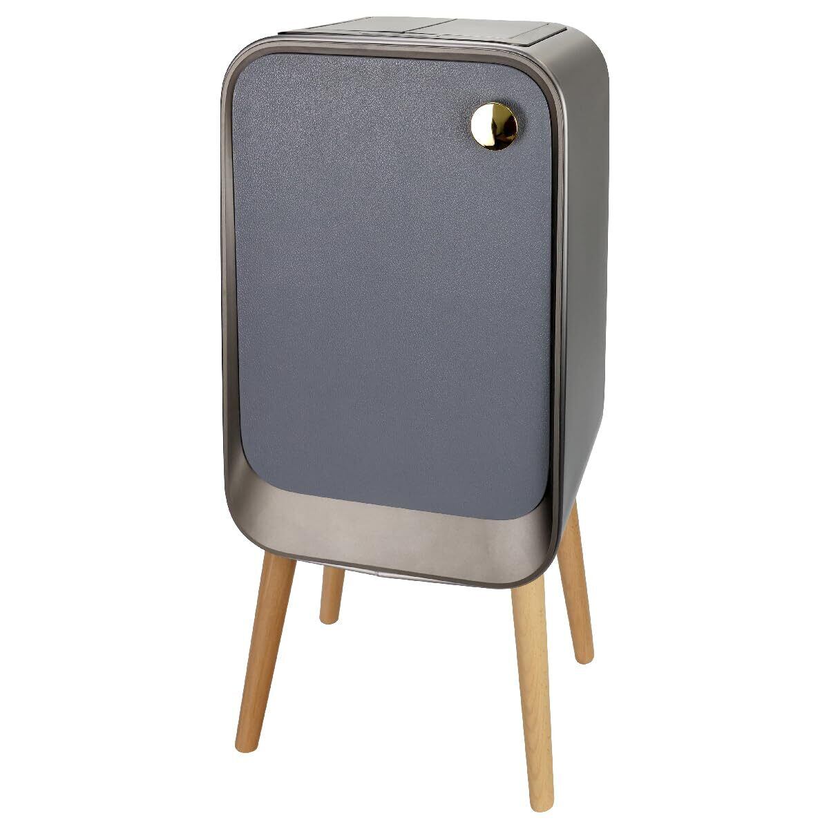【セット内容】ゴミ箱×1点 吸盤×4点 単三電池×2本 【サイズ(約)】横幅29cm×奥行22.1cm×高さ61.7cm(脚込み) 【容量(約)】20L 【材質】ステンレススチール,ABS,PP,木製(脚)