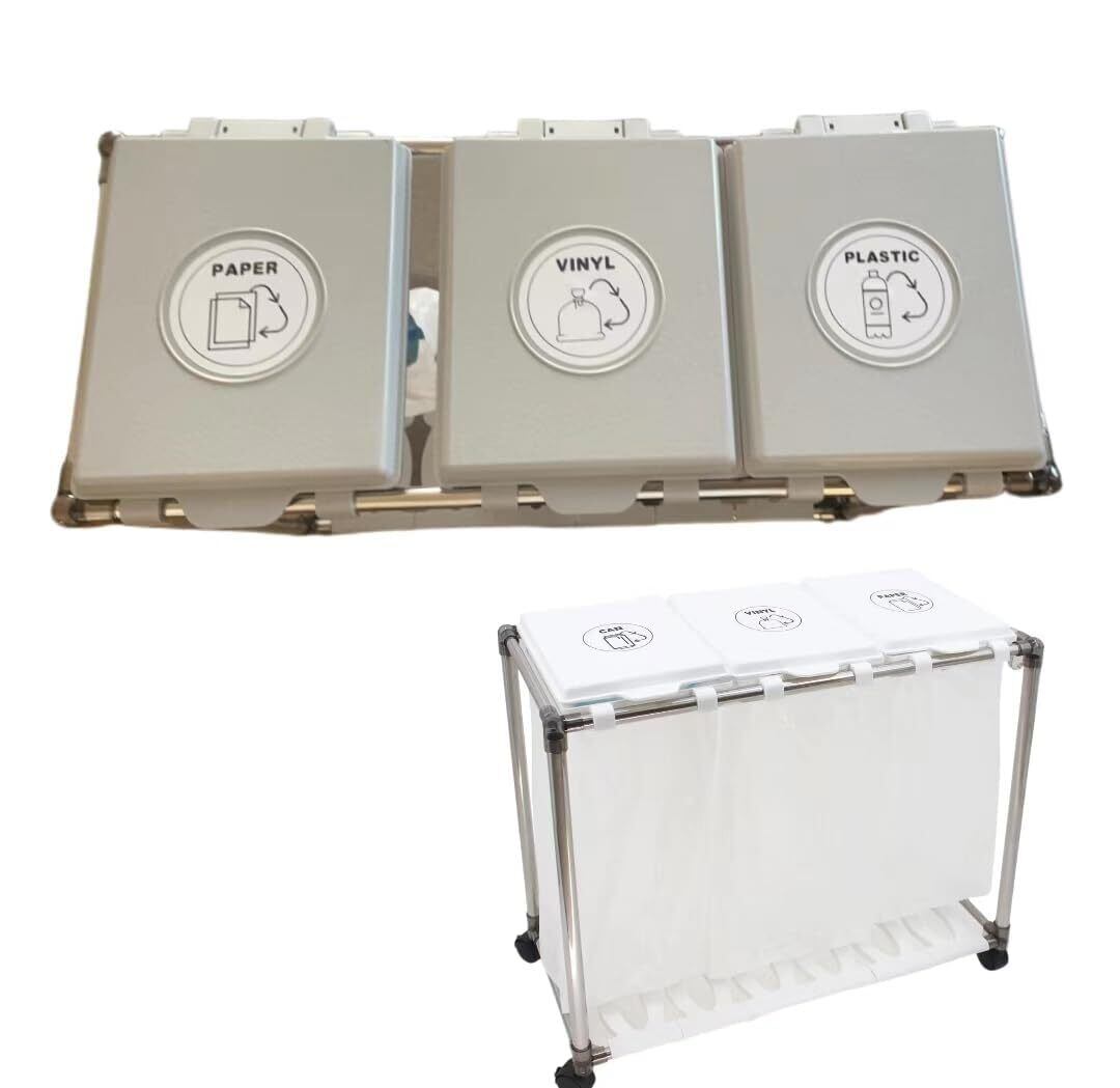 【3分別ゴミ袋ホルダー】ぺットボトルや空き缶・ビンなどの資源ゴミの分別に便利なゴミ袋ホルダーです。