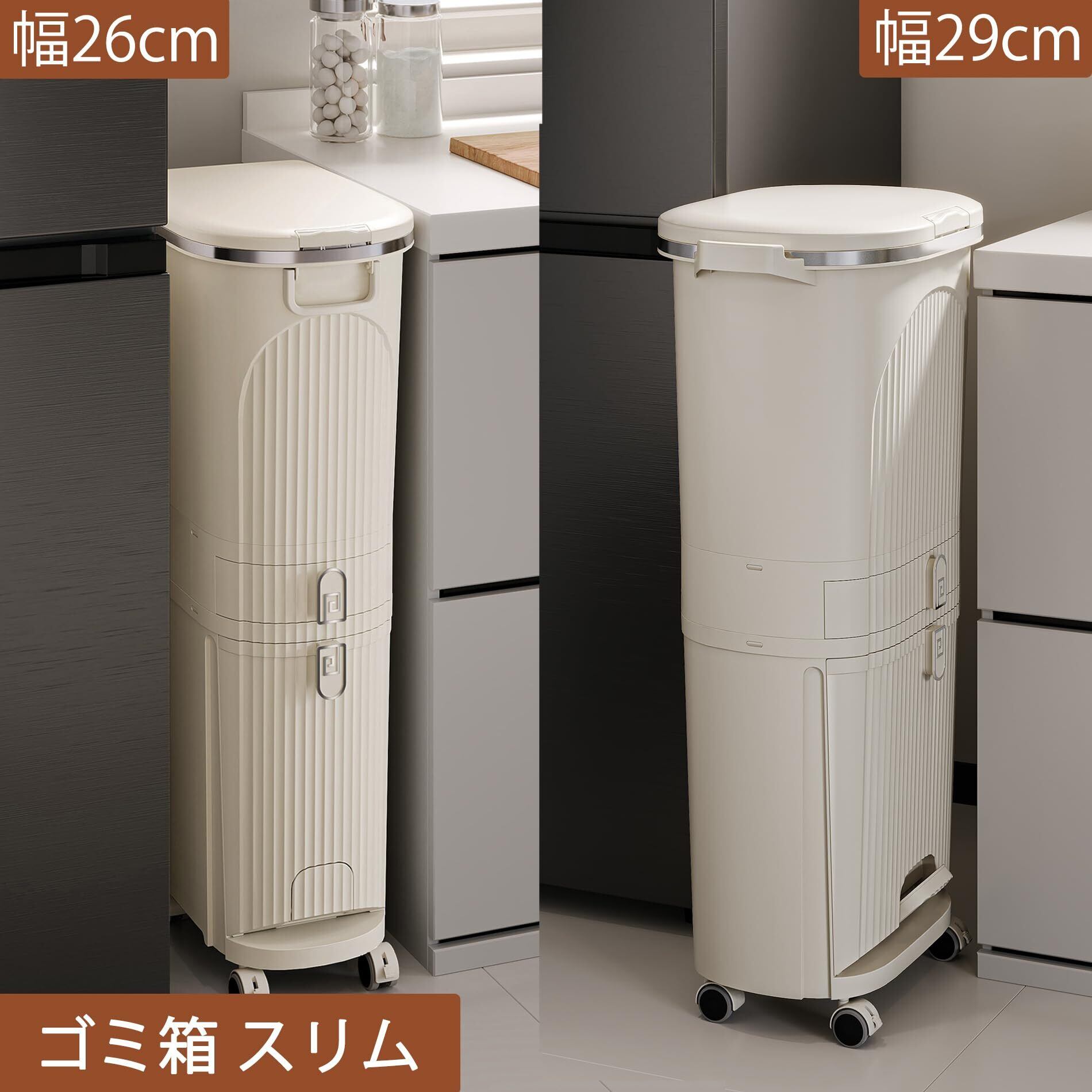 【特価商品】ゴミ箱 分別 2段 ふた付きゴミ箱 スリム ダストボックス おしゃれ キッチン 縦型 キャスター付き インナーバケット2つ 大容量 組立簡単 幅43x奥行29x高さ74.5cm 38L(12L+12L+14L) ホワイト