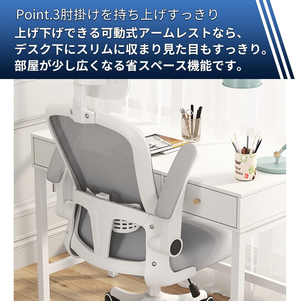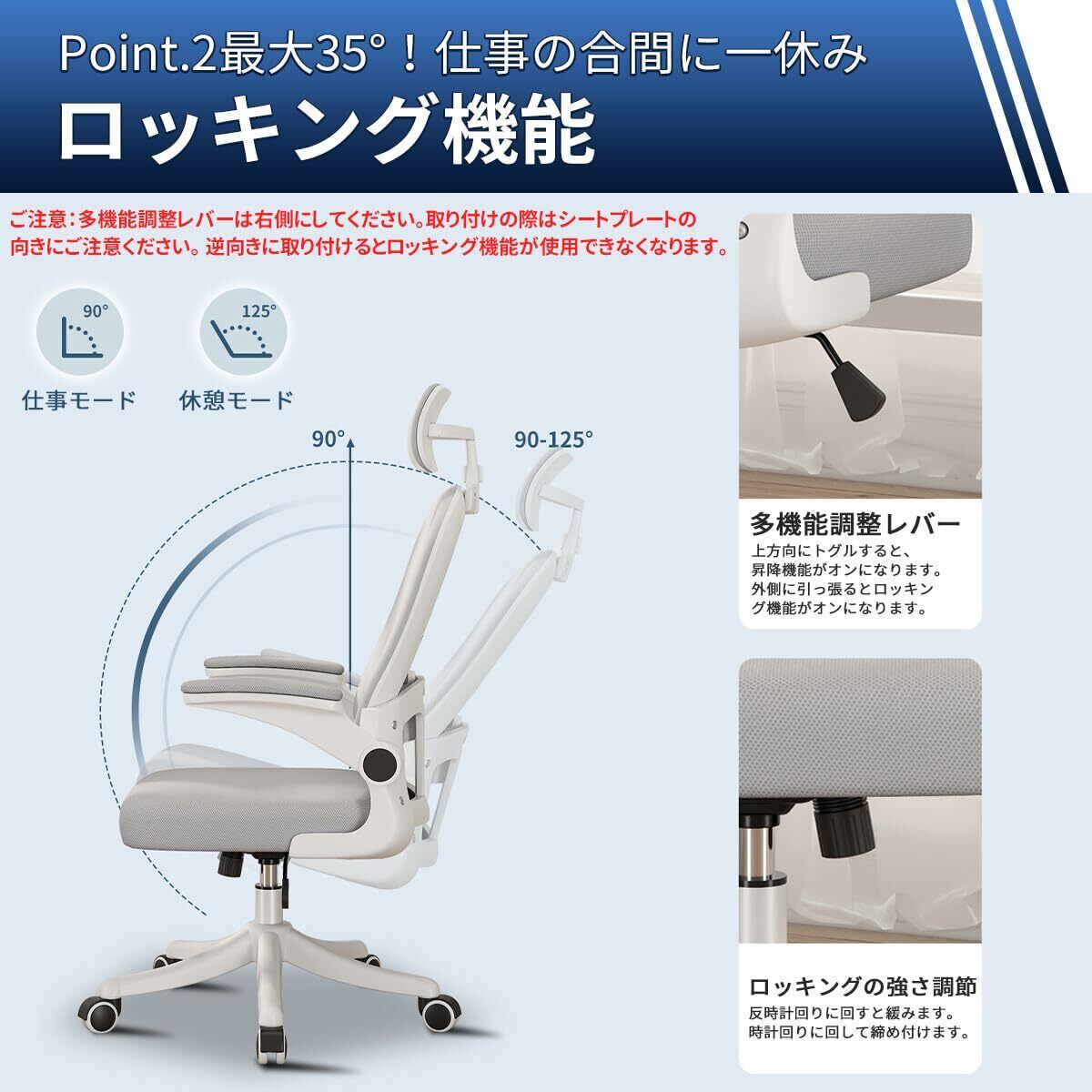 オフィスチェア ハイバック デスクチェア ヘッドレスト付 約135度ロッキング 跳ね上げ式アームレスト ランバーサポート 10cm高さ調整 座面昇降 静音PUキャスター 360度回転 いす 事務椅子 学習椅子 ワークチェア ゲーミングチェア 在宅ワーク おしゃれ