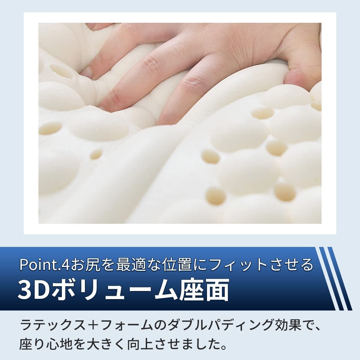 【高反発3Dボリューム座面】お尻を自然に最適位置にホールドしてくれ、疲れにくい姿勢に導きます。