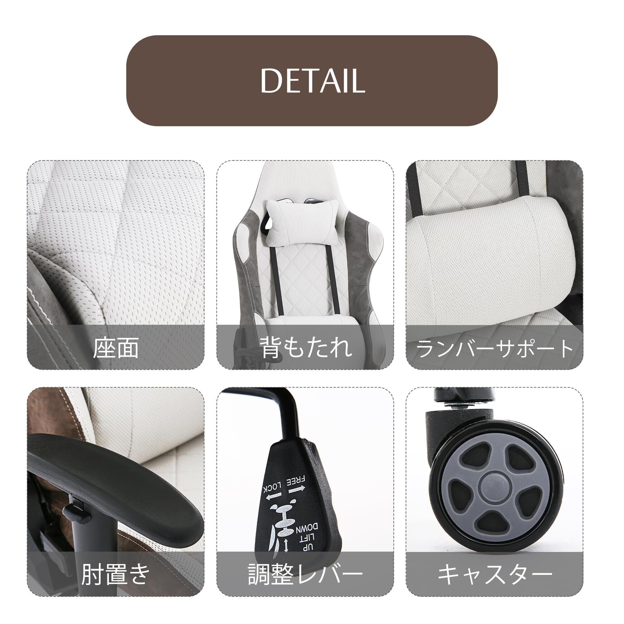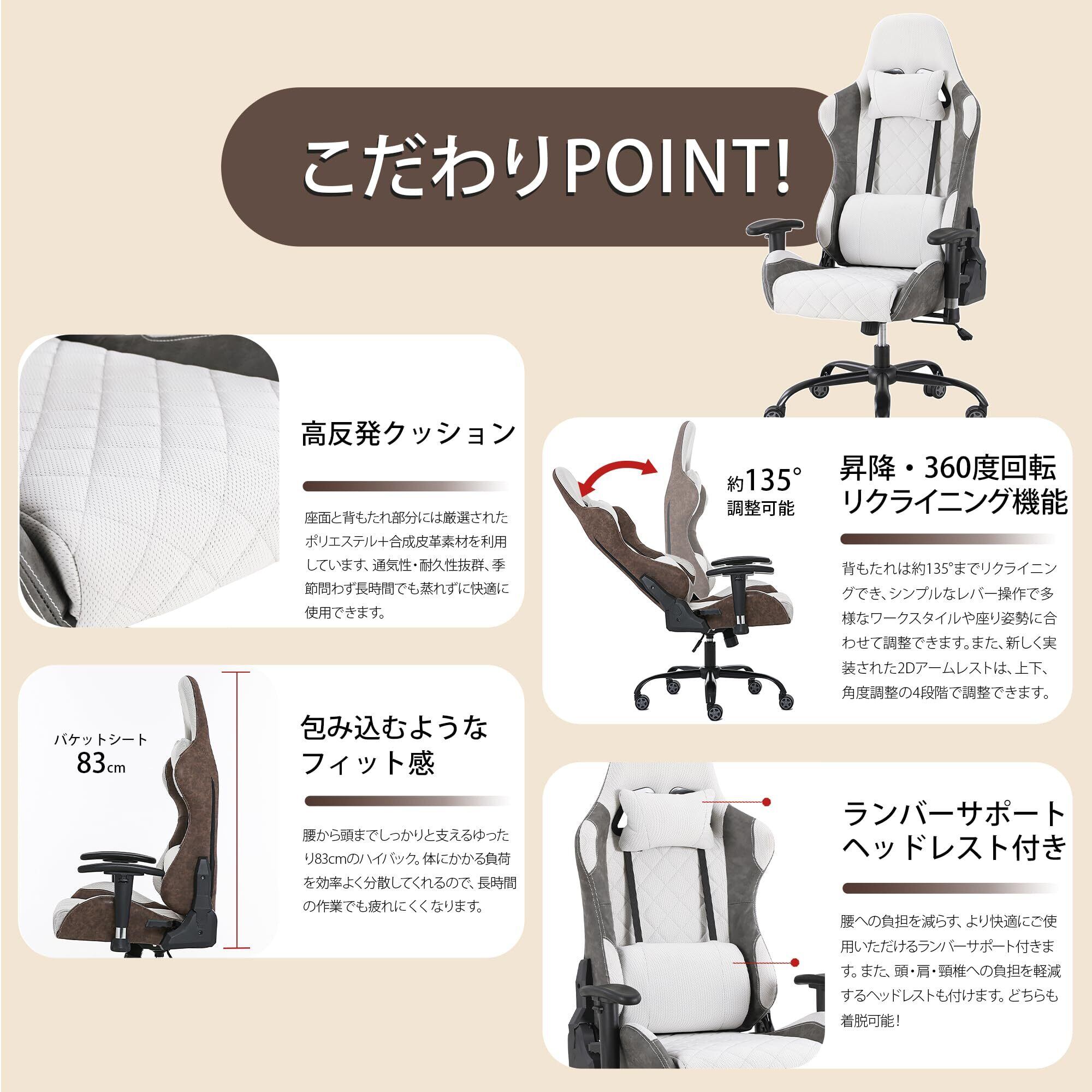 RECX ゲーミングチェア 人間工学椅 2D アームレスト付き 高機能パソコンチェア グレー