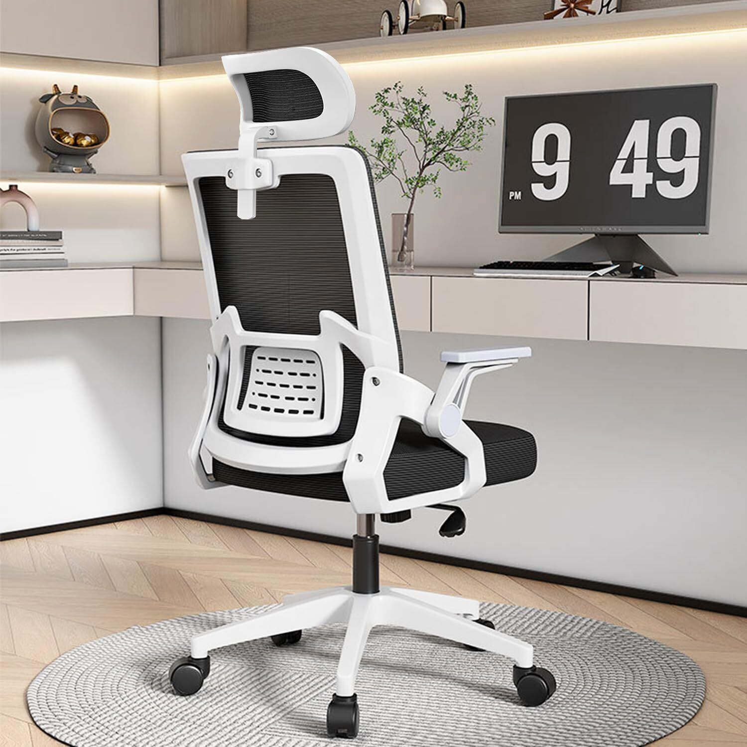 HLIFE オフィスチェア デスクチェア 人間工学 テレワーク チェア 疲れない 椅子 腰サポート 跳ね上げ式アームレスト 3Dヘッドレスト ロッキング機能 高反発クッション PCチェア 通気性メッシュ ゲーミング/勉強/事務用 おしゃれ パソコンチェア(ホワイト)