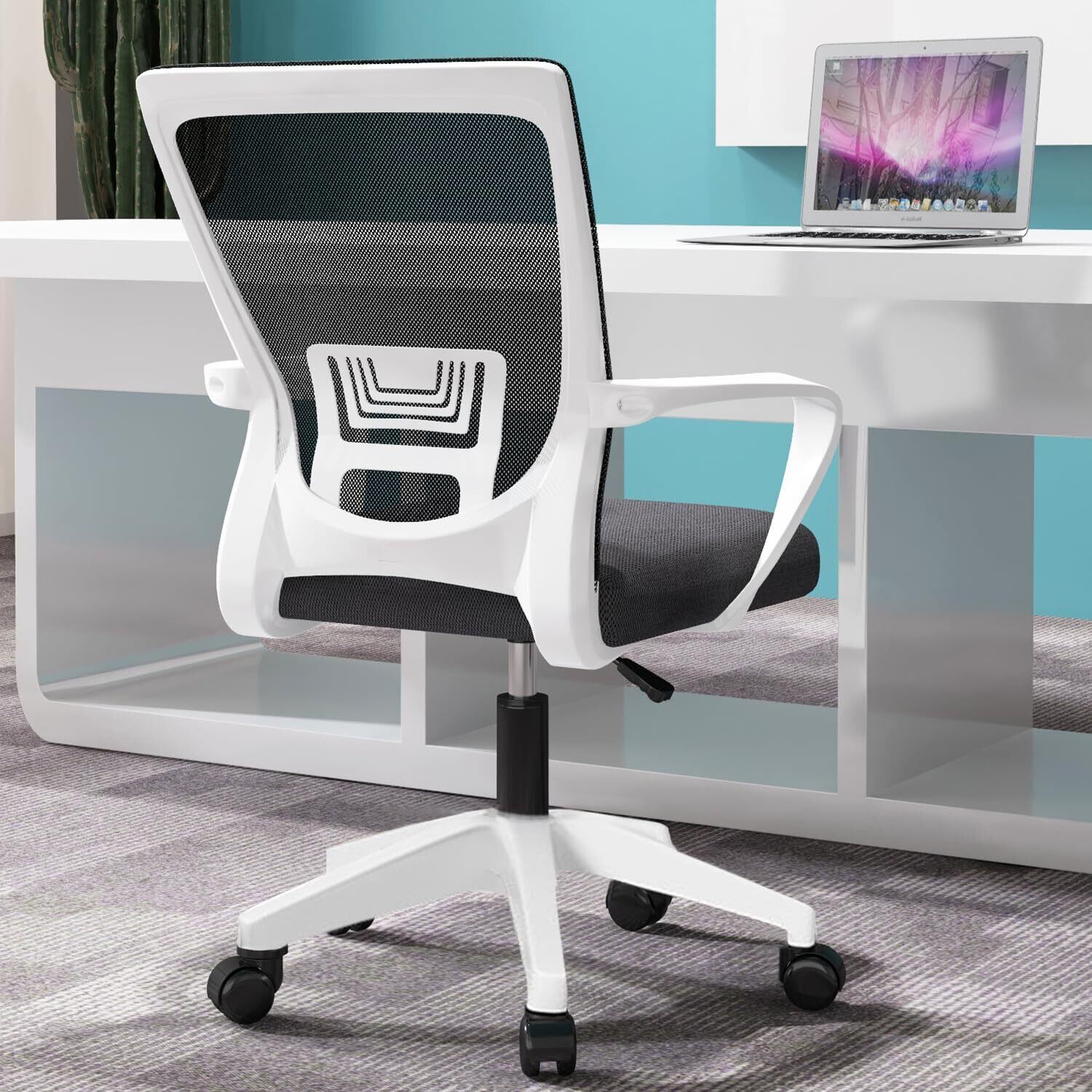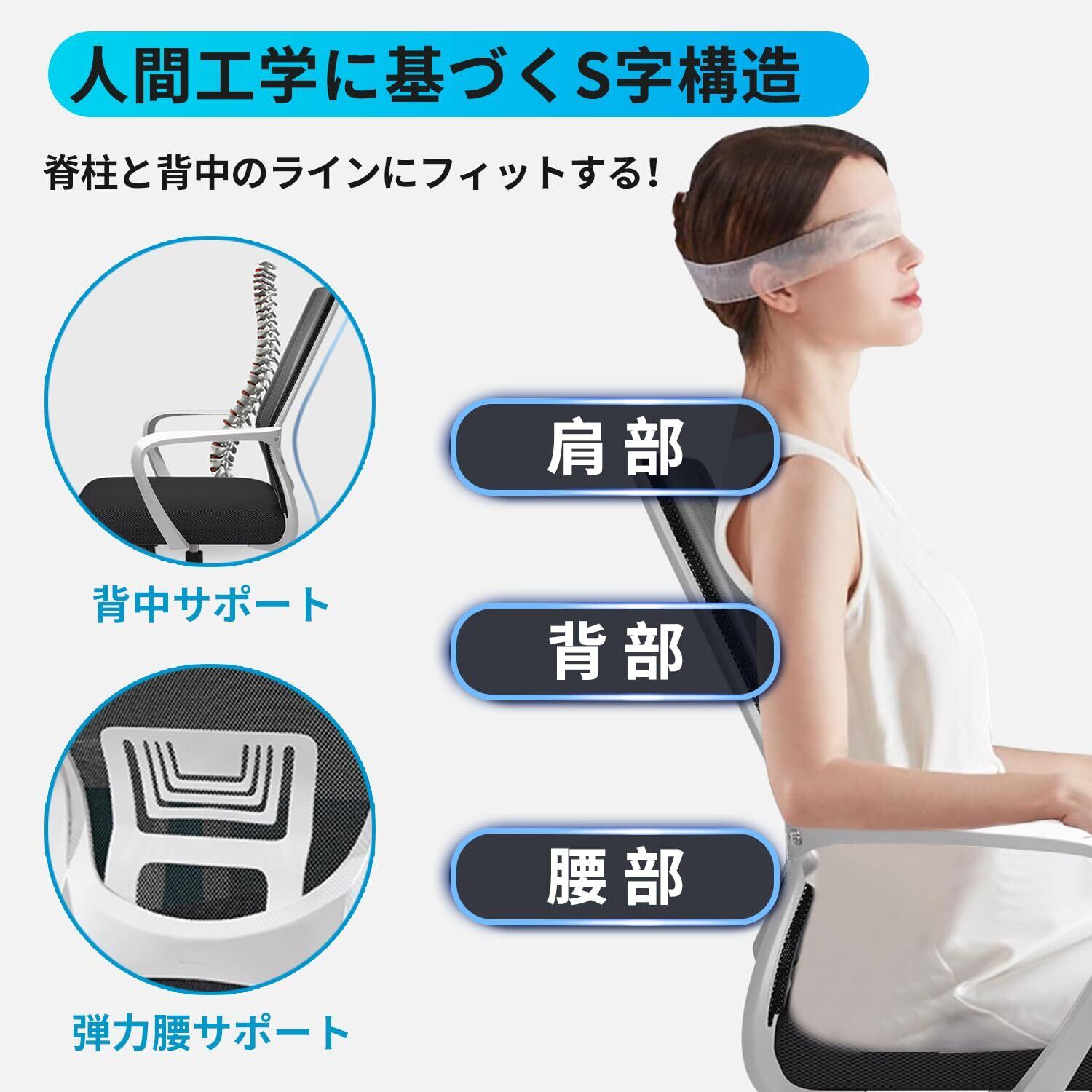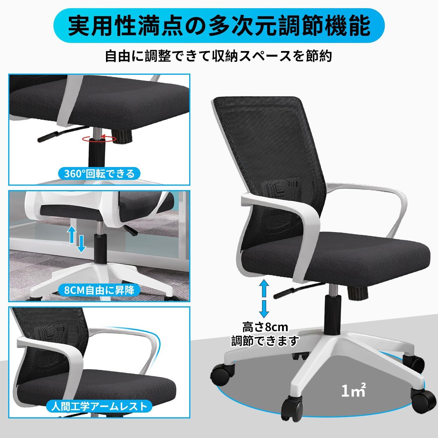 HLIFE オフィスチェア デスクチェア 人間工学 テレワークチェア 8CM昇降 ロッキング機能 疲れない 椅子 厚手高反発クッション 360度回転 通気性メッシュ 腰サポート ナイロン樹脂ベース おしゃれ PCチェア ゲーミング/勉強/事務用 パソコンチェア (ホワイト)
