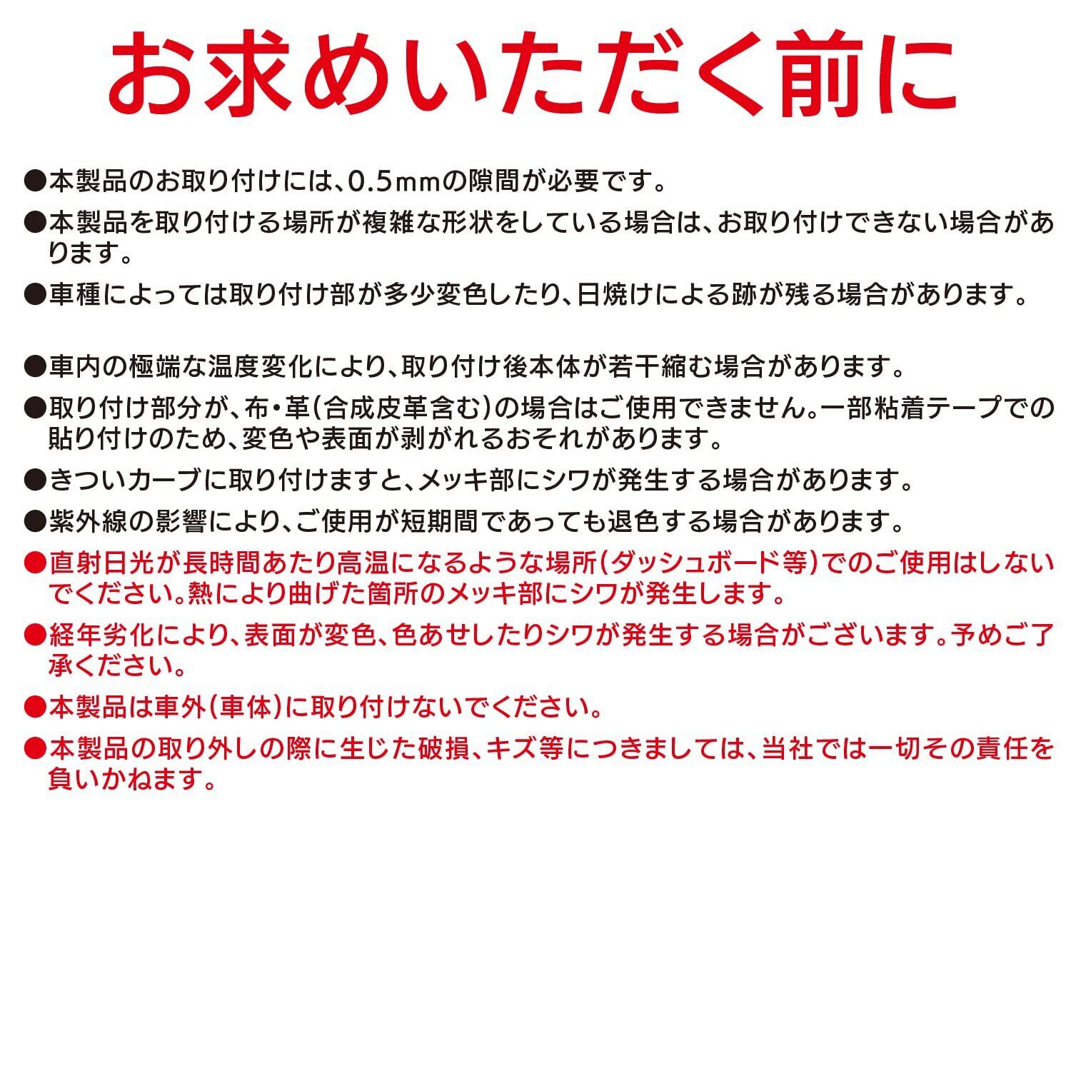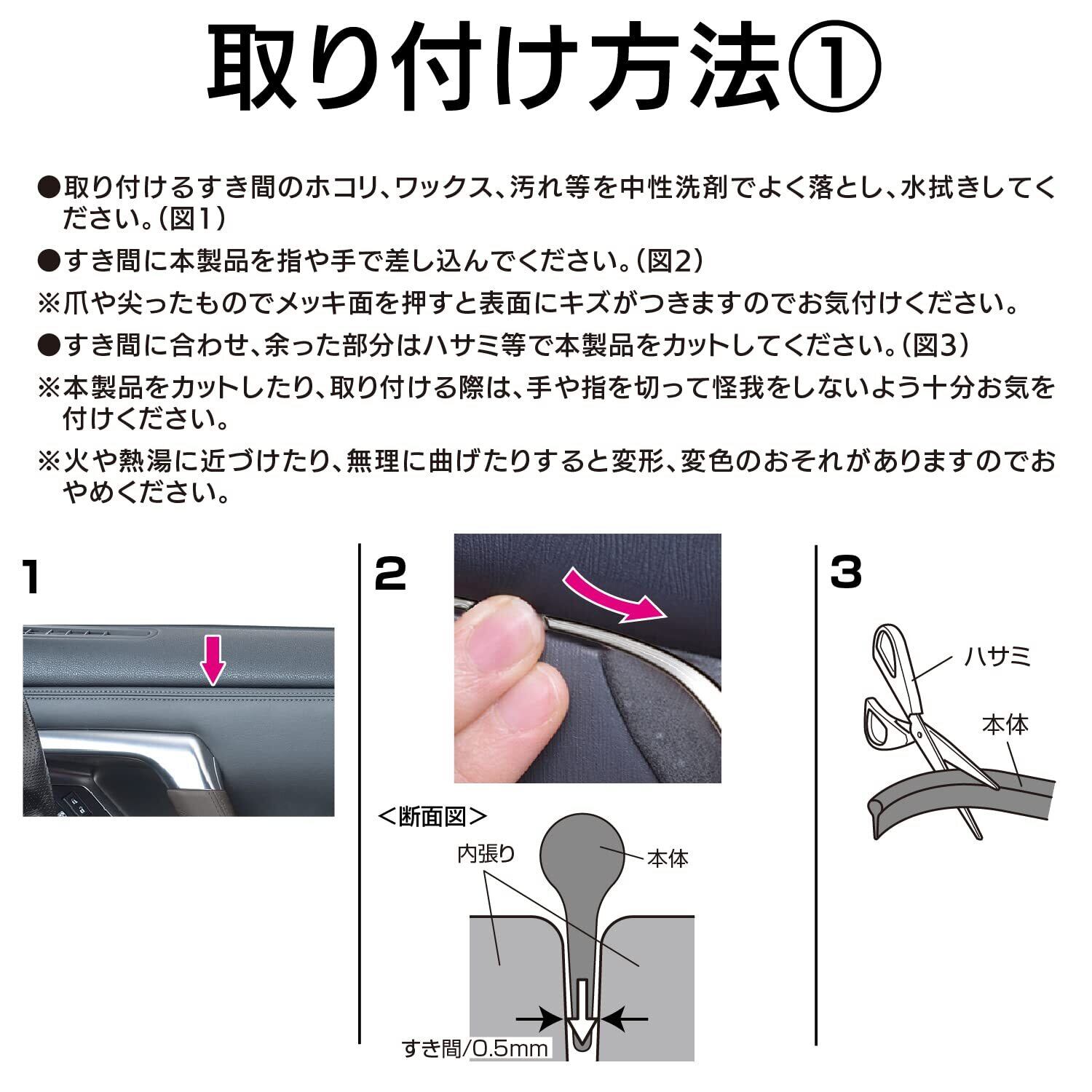 ・取り付けるすき間のホコリ、ワックス、汚れ等を中性洗剤でよく落とし、水拭きしてください。