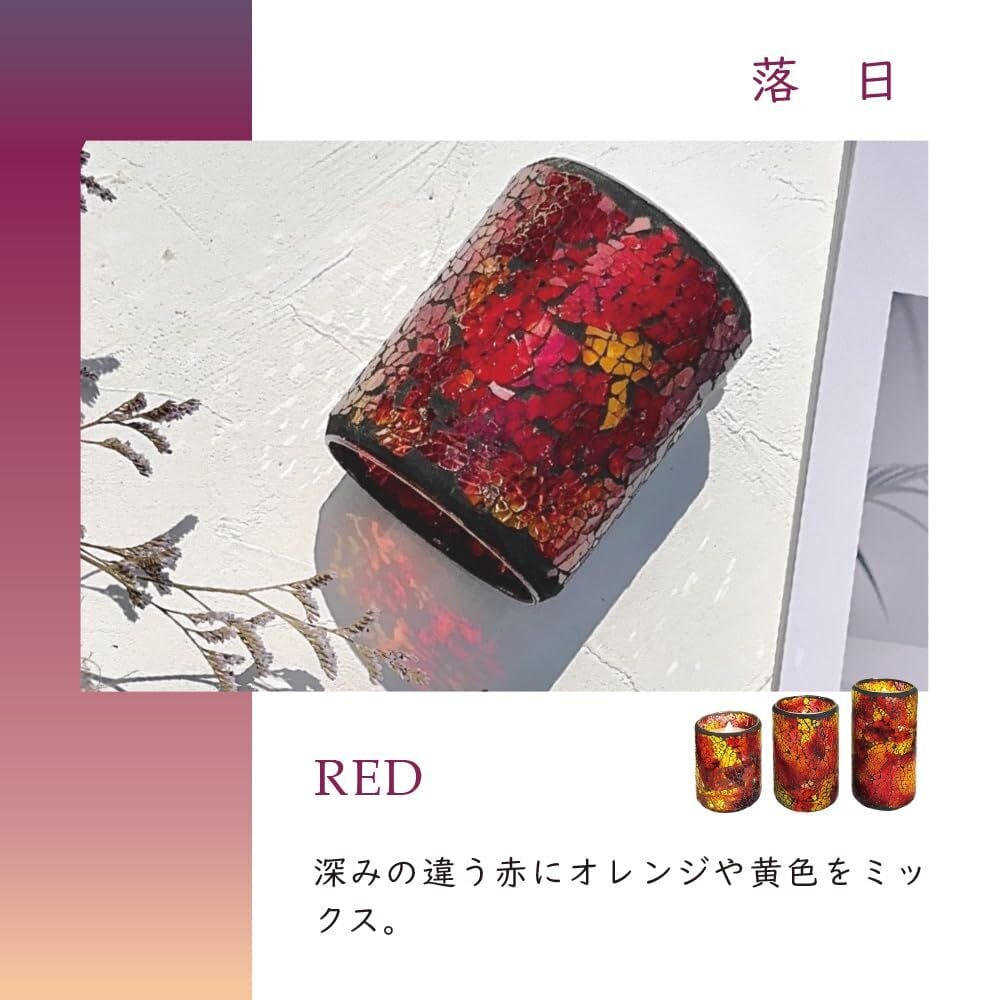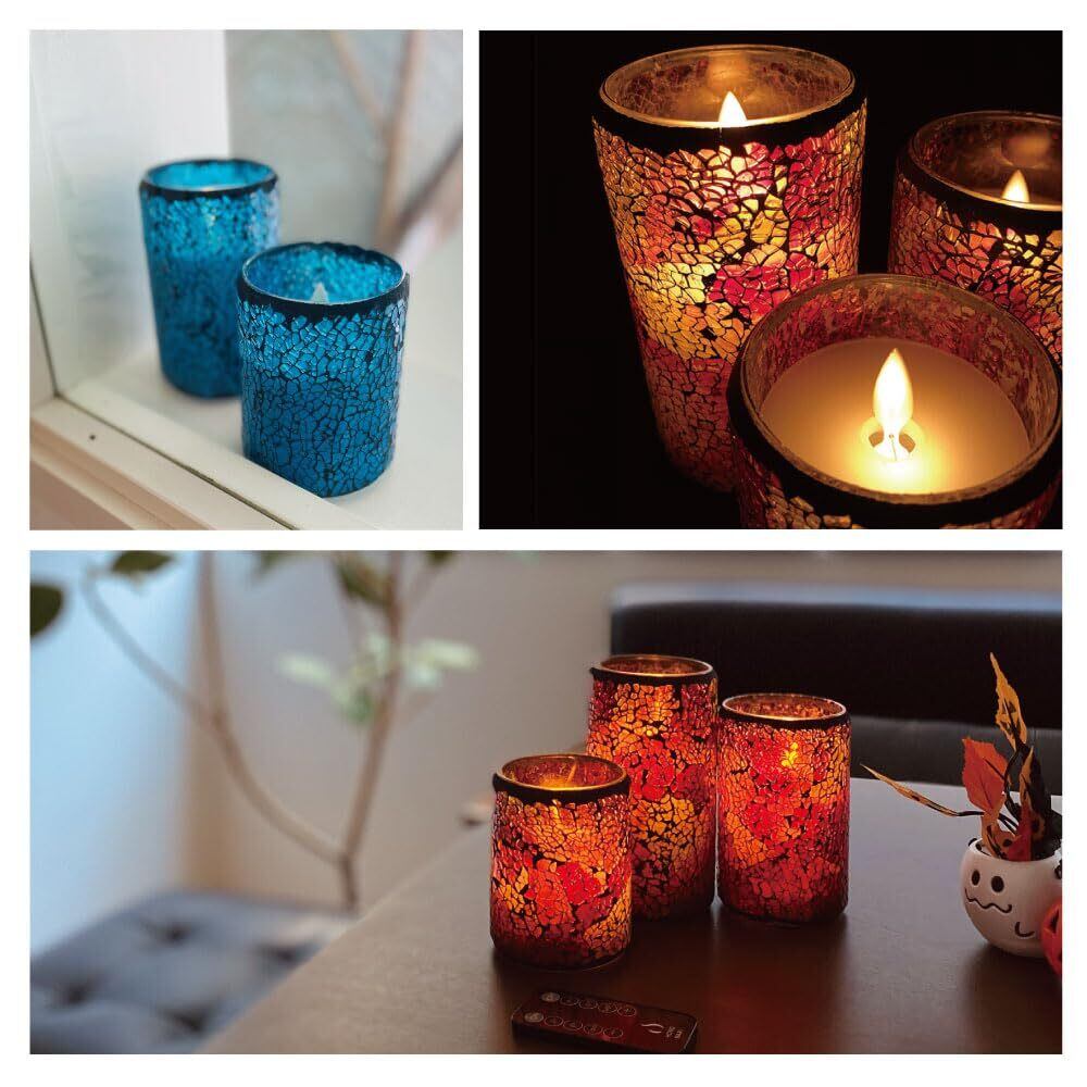 LED キャンドルライト 大中小3点セット 専用リモコン付 間接照明 StainedGlass レッド