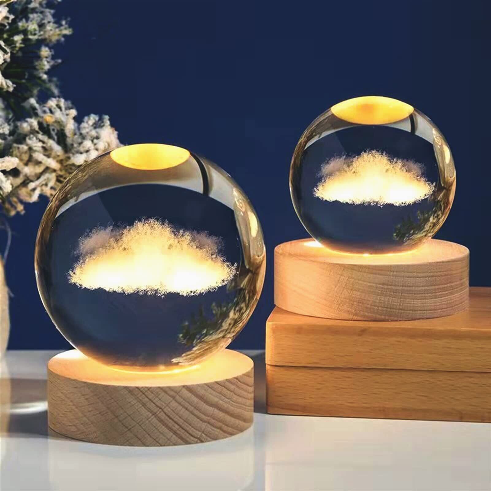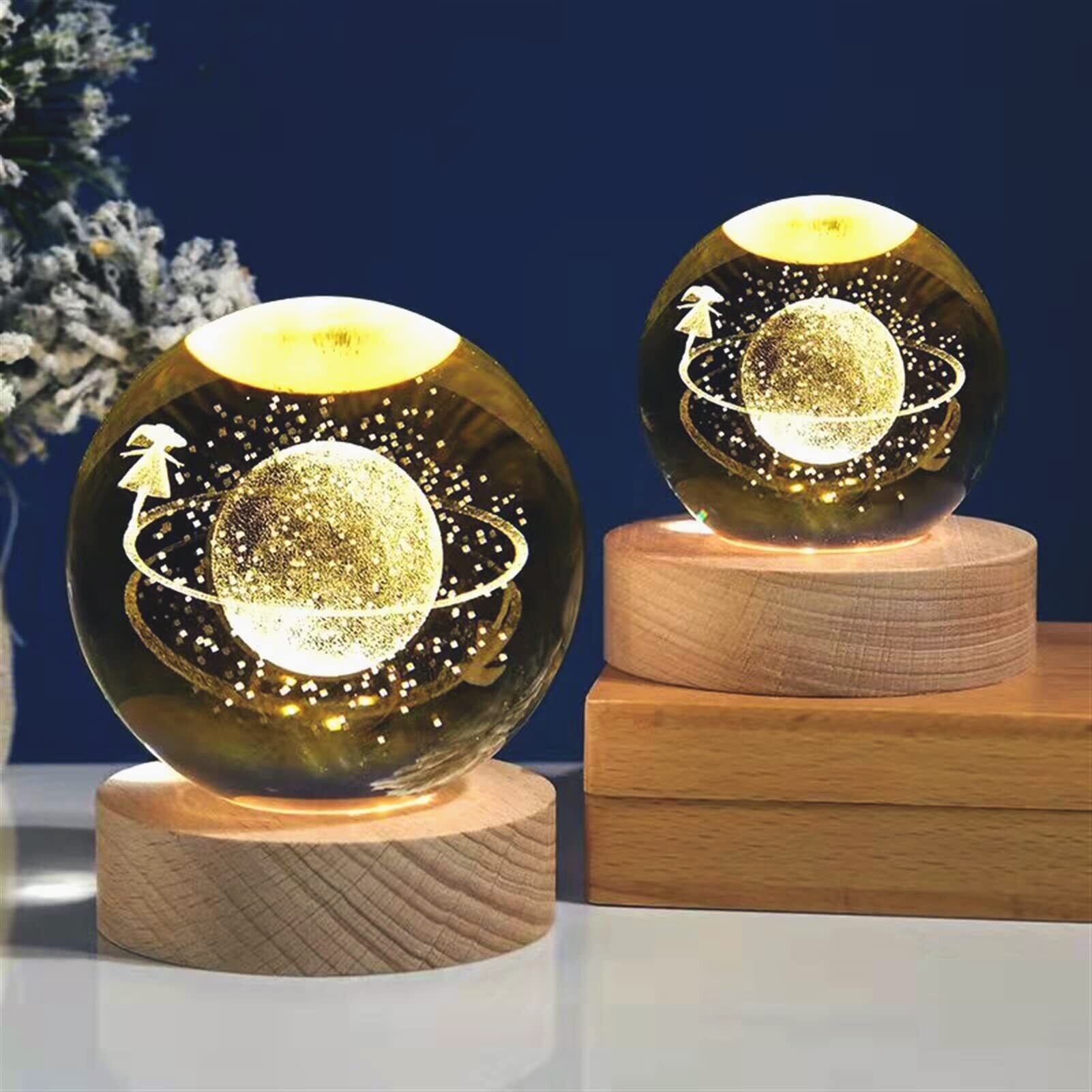 クリスタルボール 宇宙 木製手作りかわいい おしゃれ間接照明 LEDライト ギフト 子供 友達 女性 人気 オシャレ インテリア 間接照明 癒し 水晶玉 宇宙 ライト インテリア 癒しグッズ クリスマス プレゼント (Color : 月)