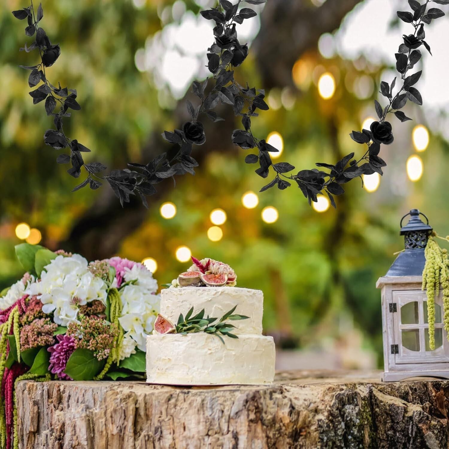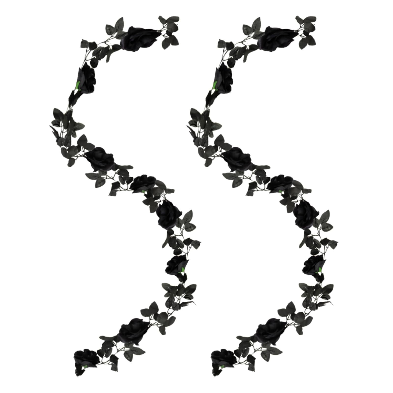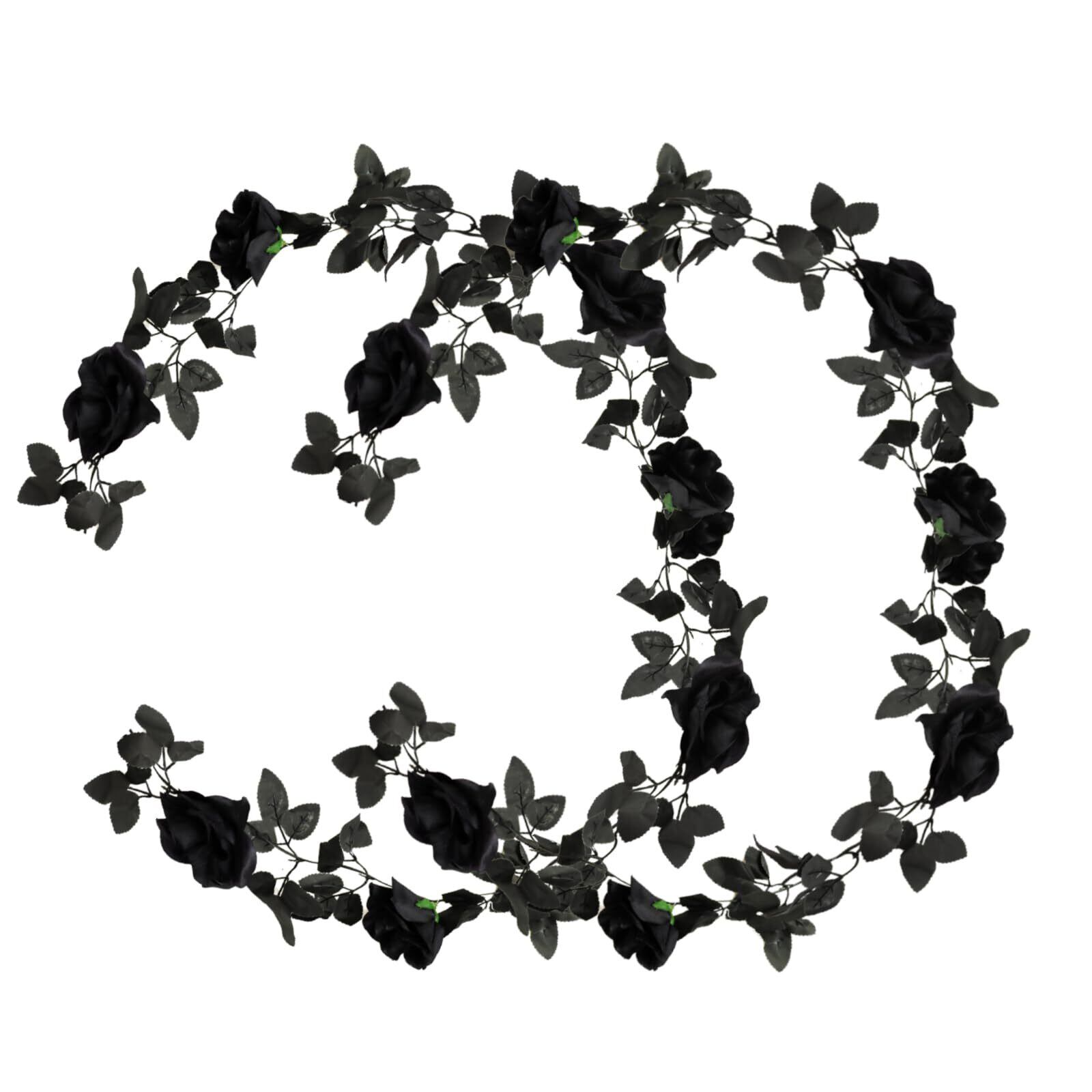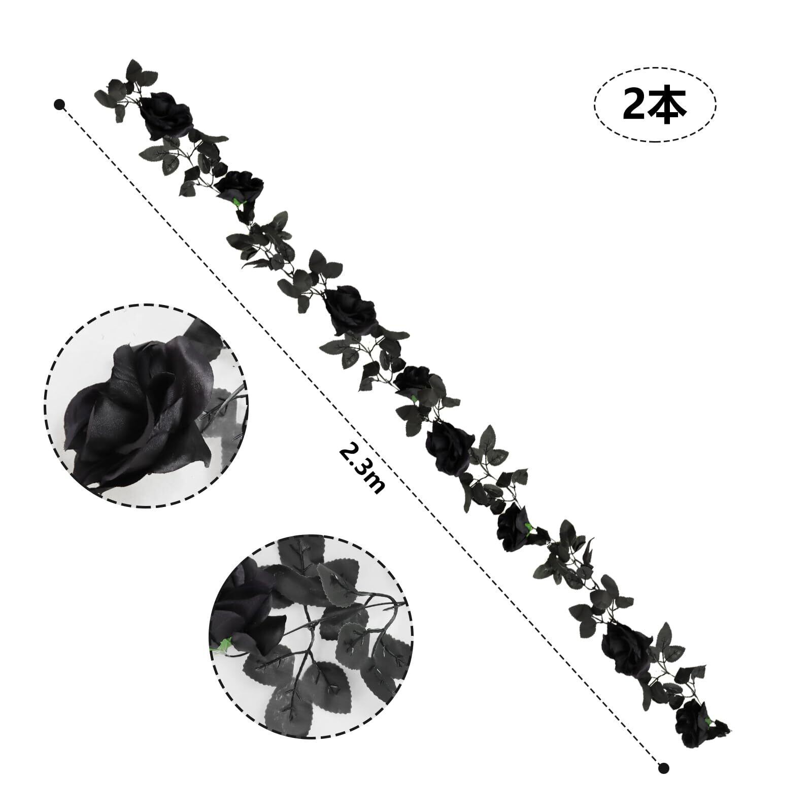 siawadeky バラ 黒 造花 ガーランド 2本セット ハロウィン飾り 人工バラのつる 黒ローズ 枯れない花 手作り花輪 花園装飾 フラワーガーランド 壁掛け造花 パーティー 写真背景 ホームデコレーション