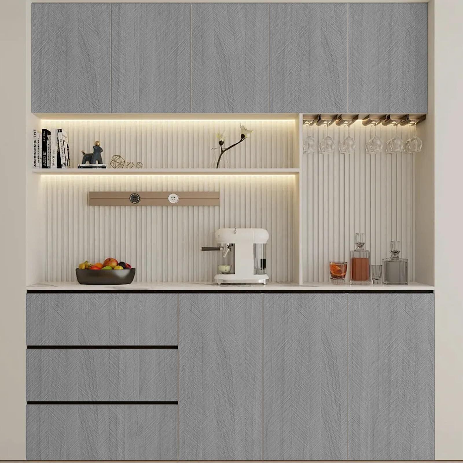 【高級感】木目調を組み合わせ、天然木材の視覚効果があり、シンプルでスタイリッシュで、キャビネットや家具を飾るのに最適です。