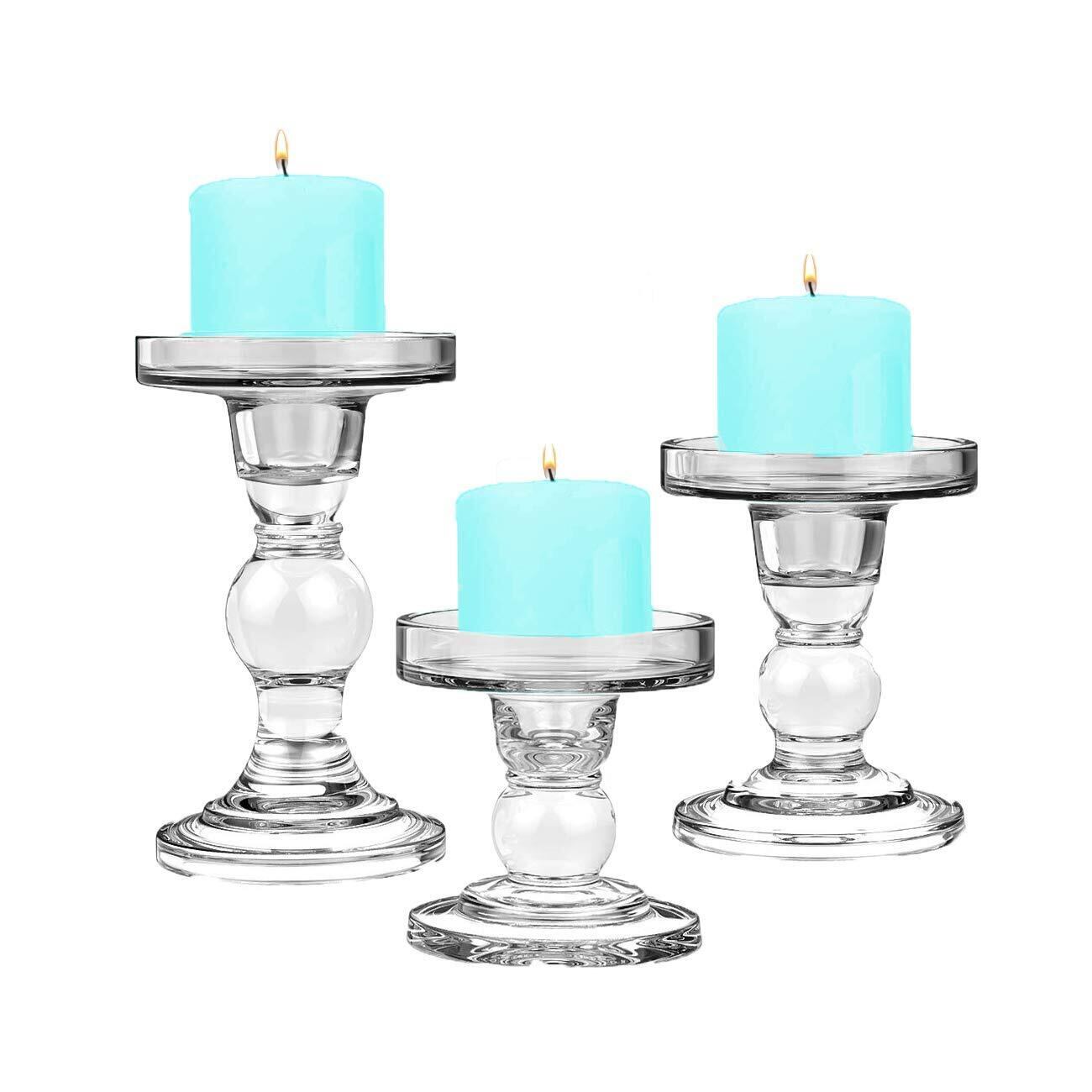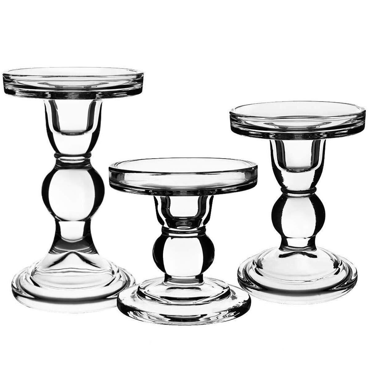 3点セット ガラス キャンドルホルダー スタンド キャンドルスティックホルダー 燭台 雰囲気作り パーティ 記念日 結婚式 誕生日 ロマンチック 部屋飾り お祝い用品 (クリア)
